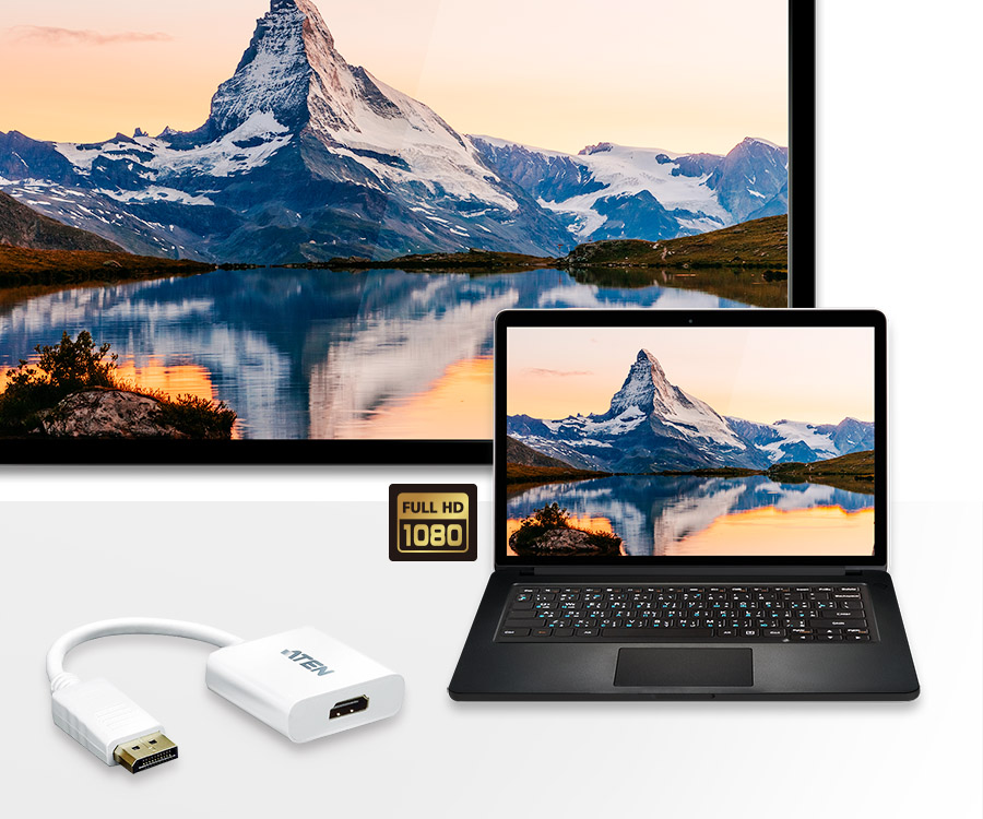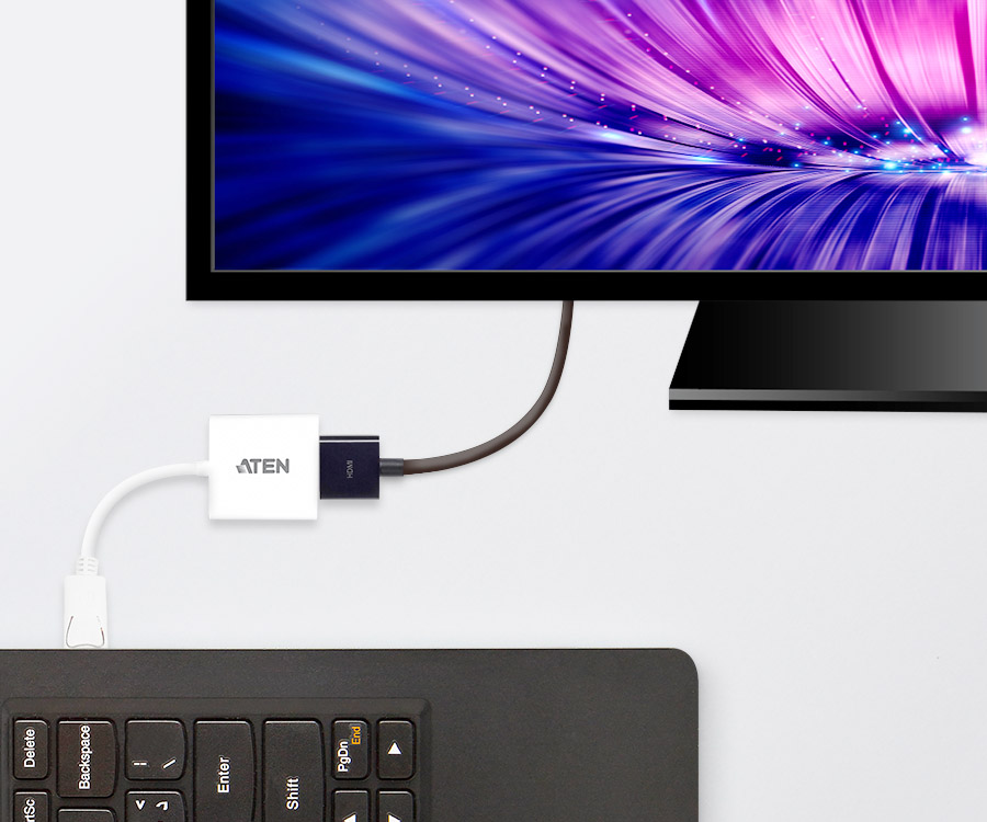 The VC985 is a DisplayPort to HDMI adapter, allowing you to connect your device’s DisplayPort output to the HDMI input of a TV or other display.