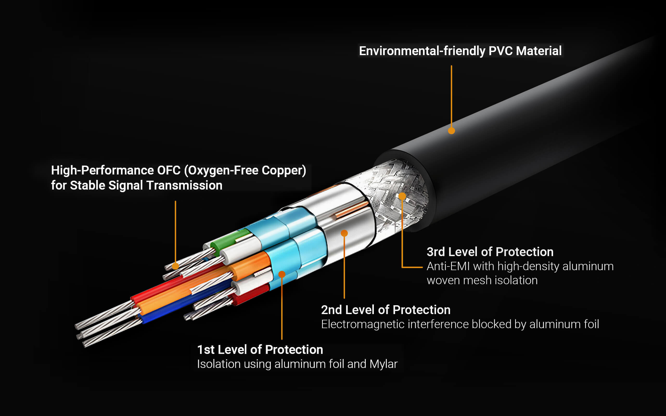 The high speed HDMI cable transmits signals at speeds of up to 18 Gbps, providing crystal-clear True 4K visuals without any flashing or ghosting in the video.