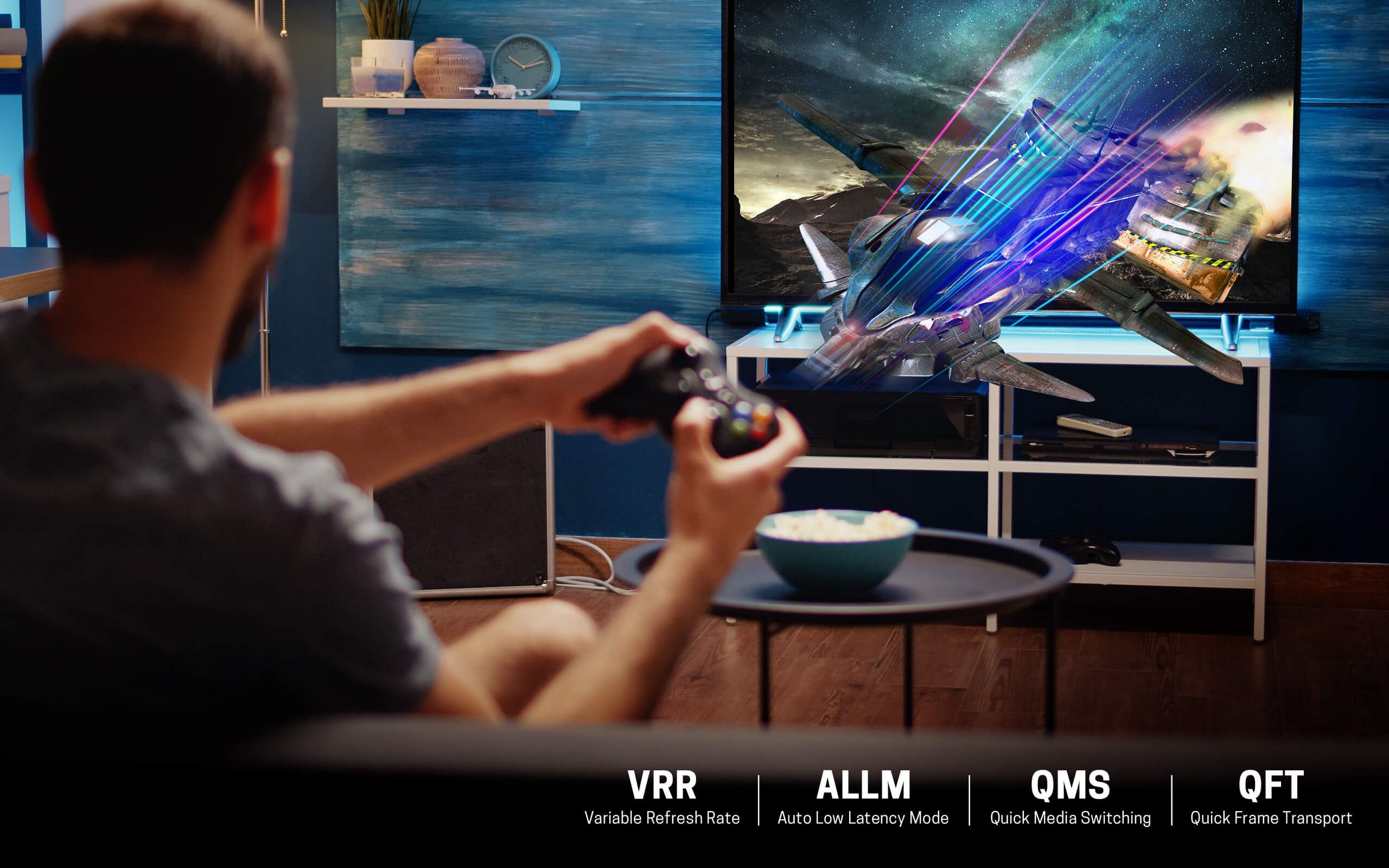 Transform your gaming experience with reduced lag, minimal screen tearing, optimized response times, and smoother video transitions, all thanks to QMS, VRR, ALLM, and QFT.