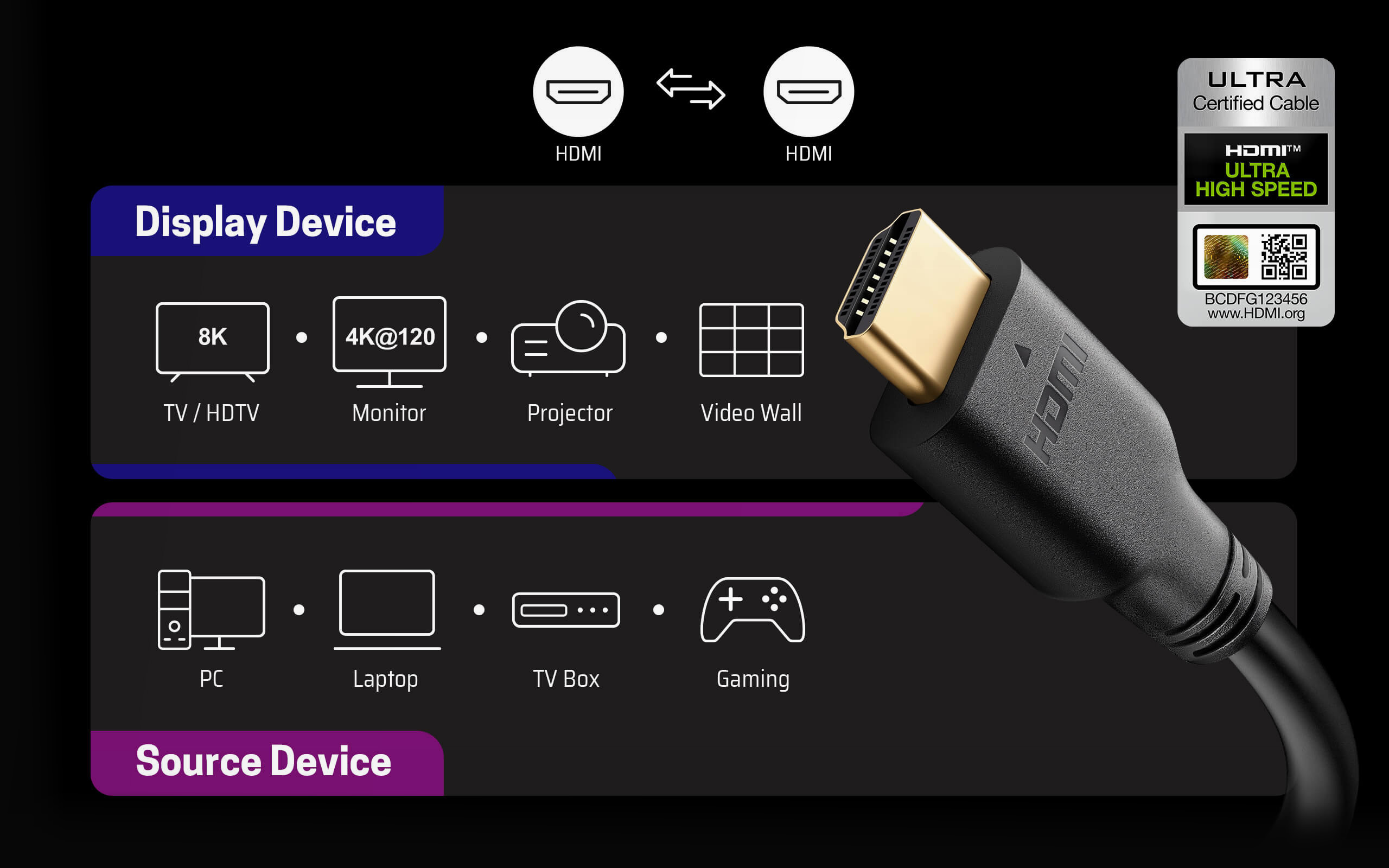 • Up to 48 Gbps high transmission speed allows for uncompressed, high bandwidth dependent content transmission