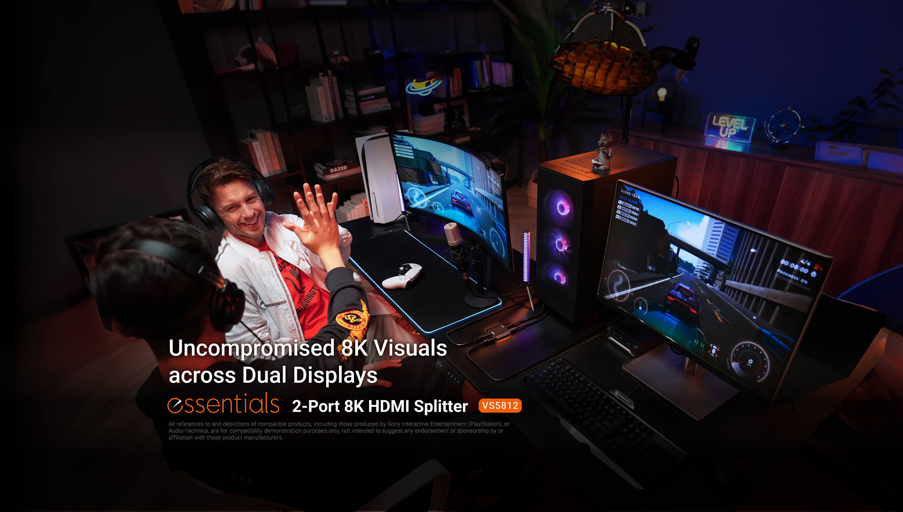 - Shares one HDMI source across two displays, delivering simultaneous 8K @ 60Hz and 4K @ 120Hz visuals