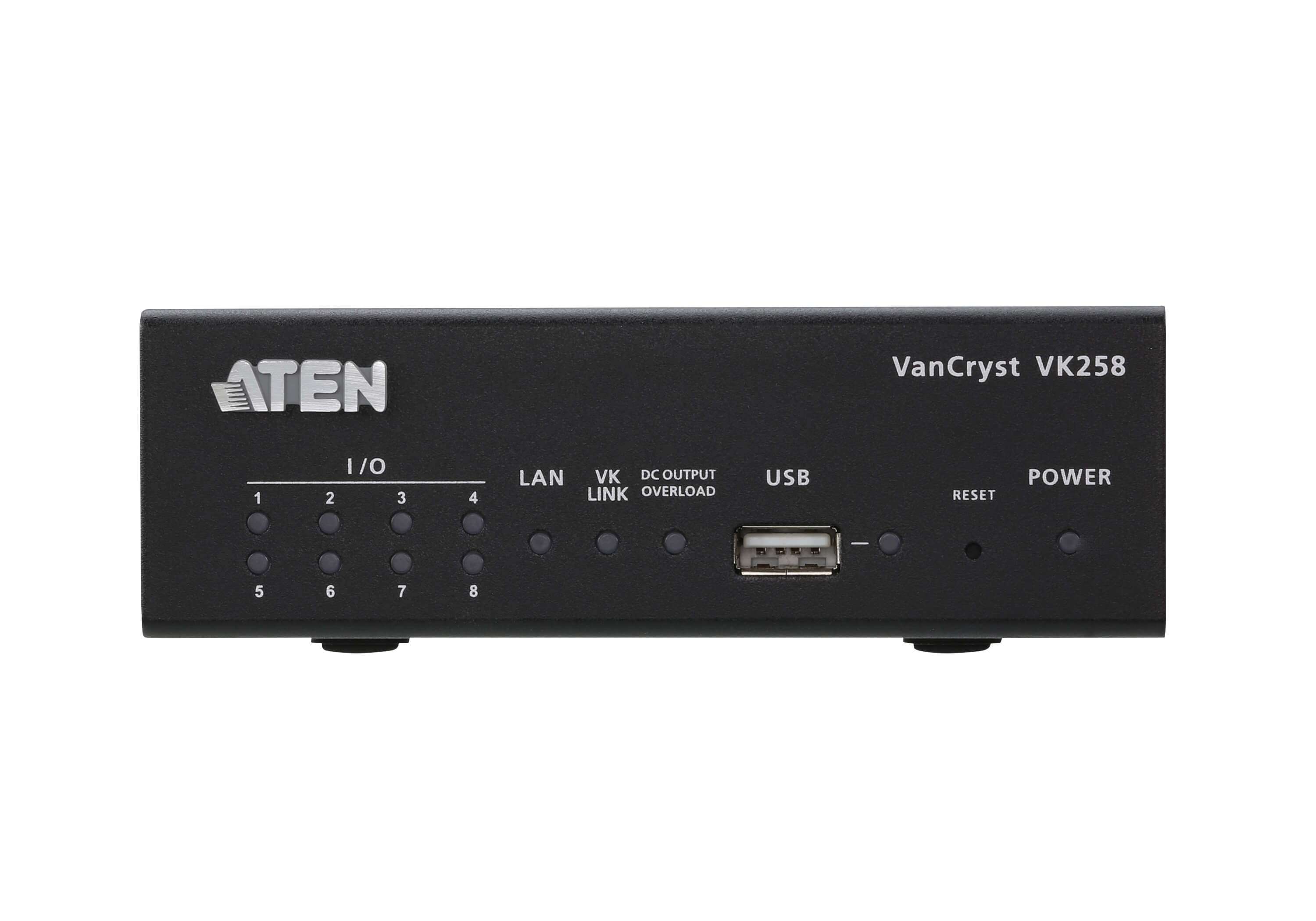 What’s more, the VK258 serves as a flexible expansion box of the ATEN Control System, enabling users to control more digital I/O devices, such as various sensors, dry contact devices, PCs, and motor-driven devices in environments where more devices need to be centrally controlled. With the advantage of Ethernet-based connection, the expansion box can be easily connected to controllers via LAN connection from a variety of locations across a network.