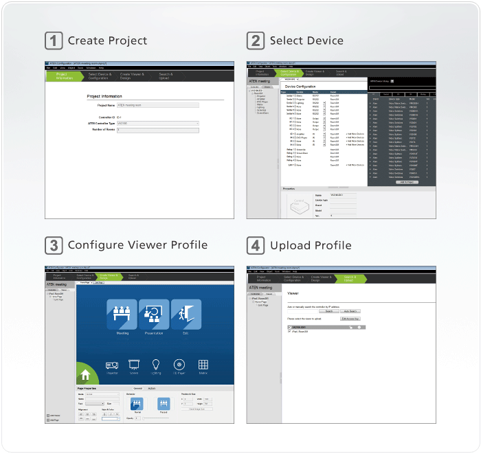 The ATEN Configurator Software (VK6000) is a GUI-based management tool that provides the easiest way to set up the ATEN Control System. You can use the software to configure devices you want to control by utilizing our intuitive GUI, which helps you to set up the system in easy configuration steps – without writing code.