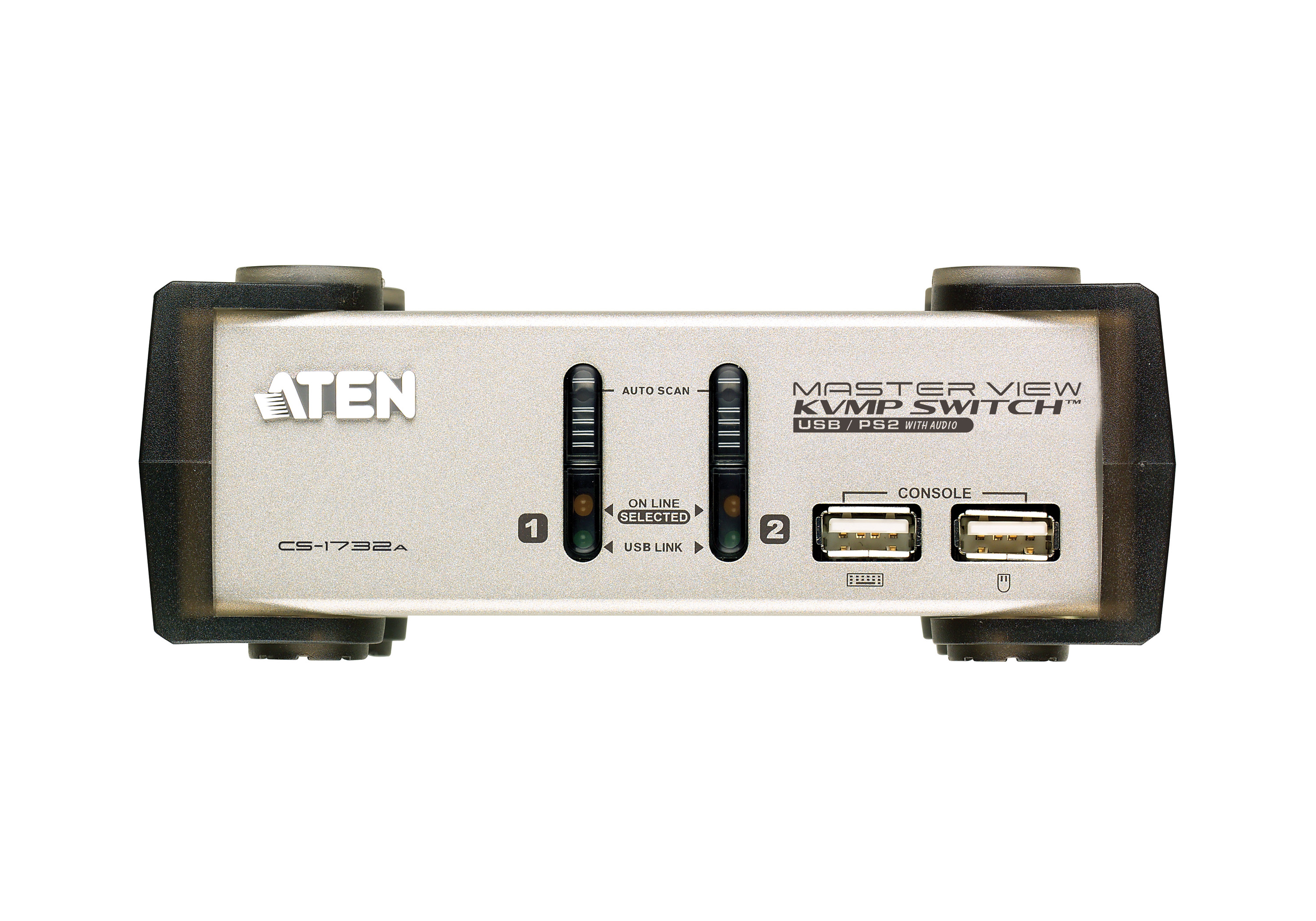 CS1732A 2 Port KVM Switch has built-in USB on each of the front and rear panels and audio signal connectors. It allows users to control the computer and peripheral devices via a signal console at ease.