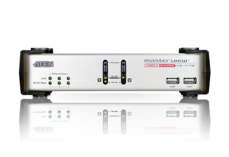 CS1772 2 Port KVM Switch is a multi-computer KVM switch with built-in 3-in-1 (KVM Switch, USB and Ethernet) function. It can simultaneously control two servers via a set of USB keyboard, mouse, and monitor. Moreover, the built-in USB and Ethernet Switch ports can rapidly access the USB peripheral devices and share Internet resources at ease.
