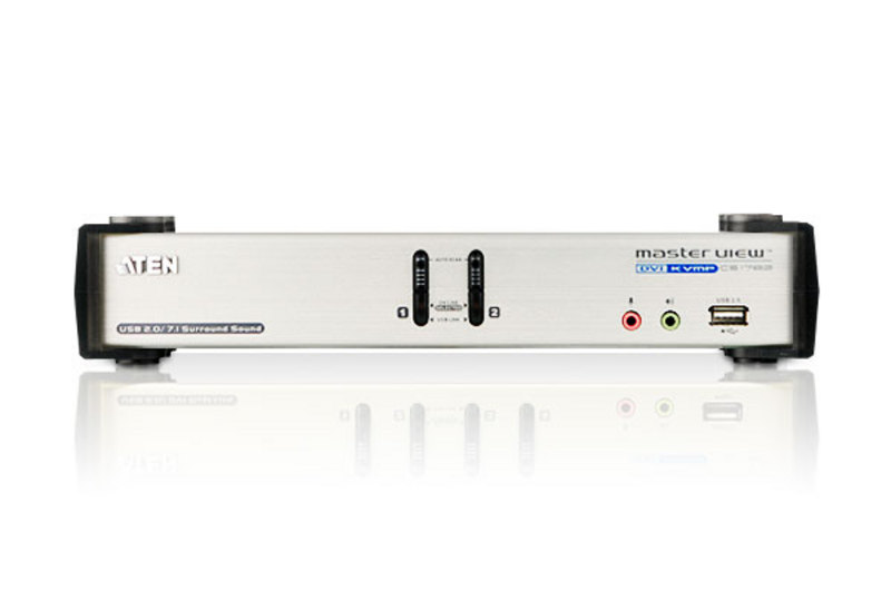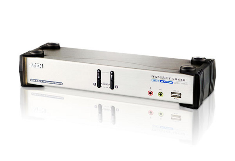 The CS1782 DVI KVMP Switch charts a revolutionary new direction in KVM switch functionality by combining a 2-port KVM switch with a 2-port USB 2.0 hub at the same time as providing an interface for a DVI monitor and 7.1 channel surround sound support.