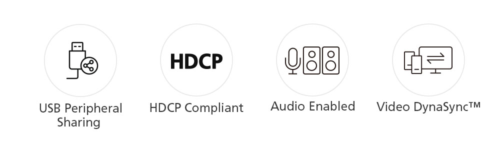 The CS1794 allows quick access to 4 HDMI-interfaced PCs via one KVM console and flexible media sharing via a 2-port USB hub, which helps to expand your desktop workspace while keeping it tidy and organized for improved productivity. With the shared FHD video quality and speaker set, multitasking between computers can be more enjoyable.