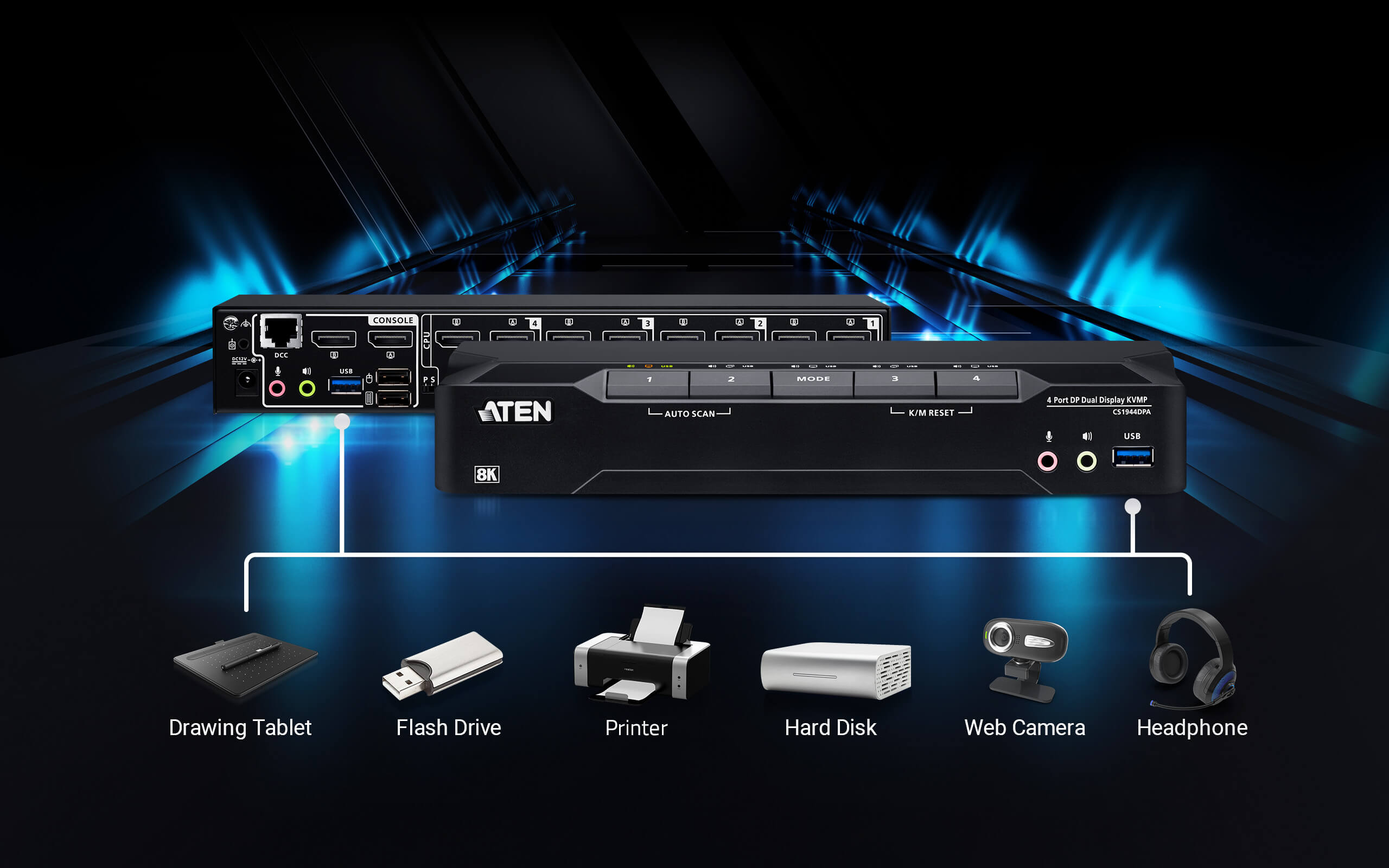 - Independent switching of KVM, USB, and Audio