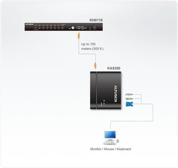 - Cat 5e cable to connect the remote unit to the KH0116 up to 150m away