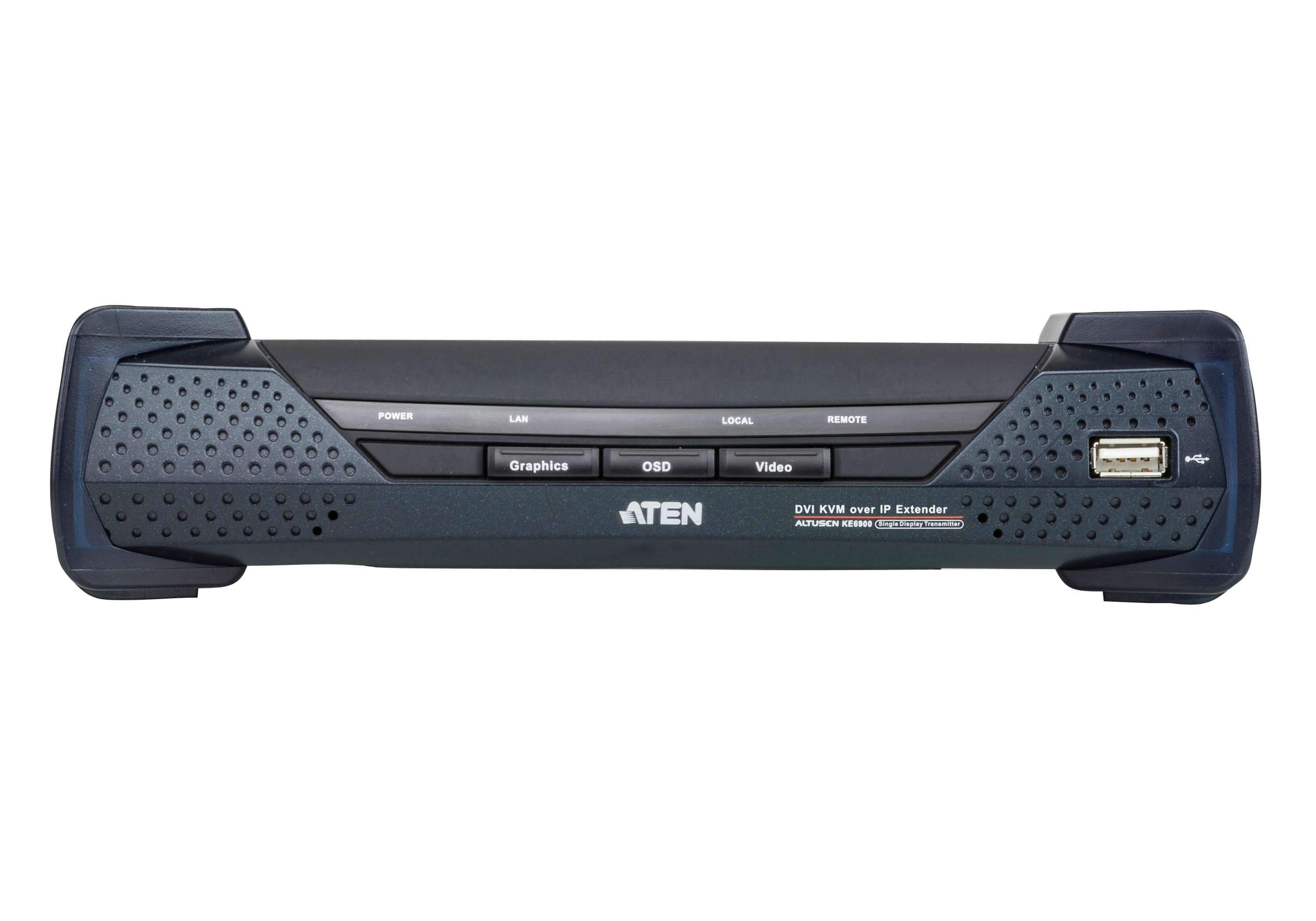 Utilizing expertise in Over IP KVM solutions, the KE6900 series is an IP based DVI KVM Extender that allows access to a computer system from a remote USB console (USB keyboard, USB mouse, DVI monitor) anywhere over an intranet. The KE6900 Single View Extender supports one DVI display at each end.