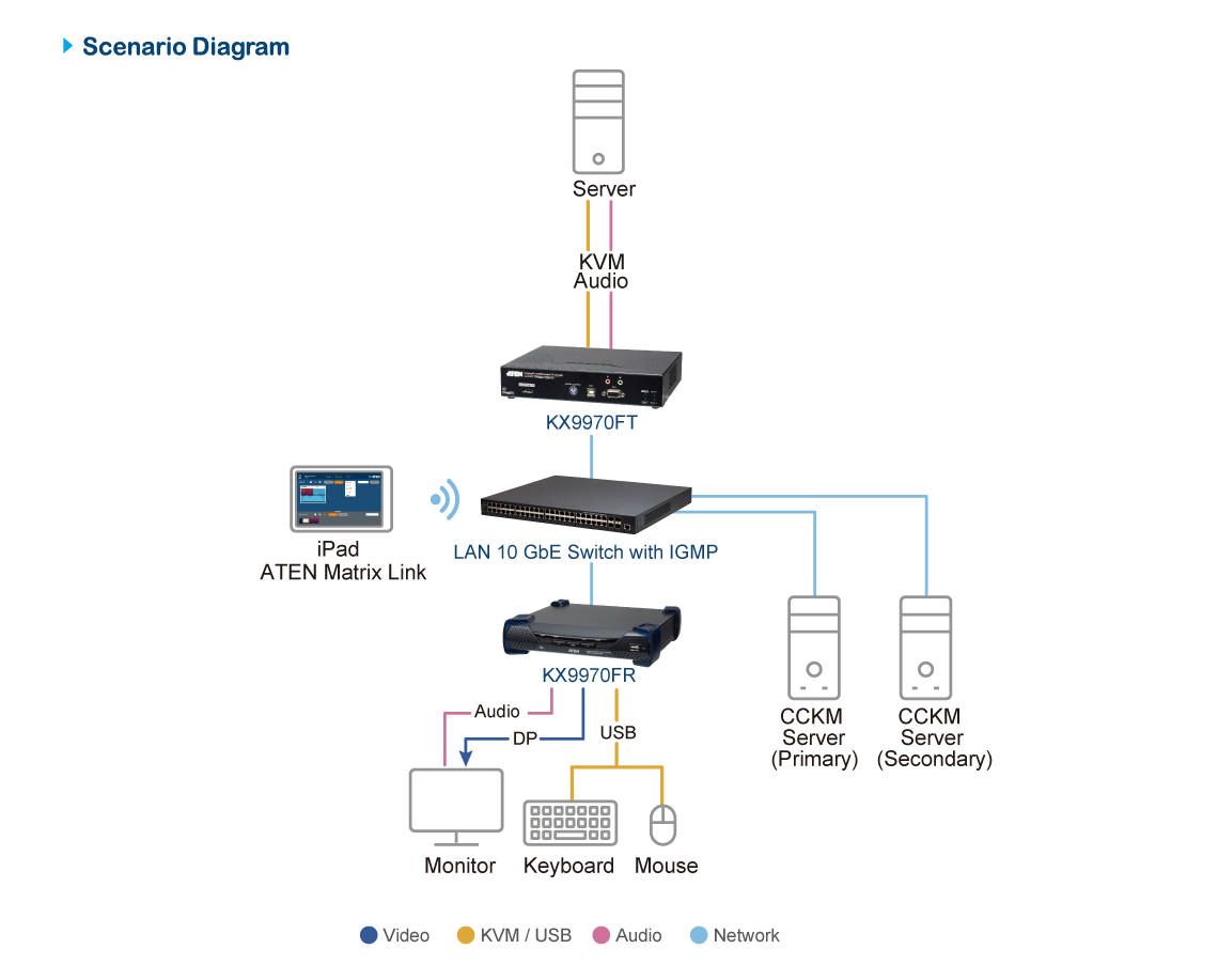 • ATEN Matrix Link – allows users to instantly link transmitters and receivers to perform real-time port and profile switching on an iPad