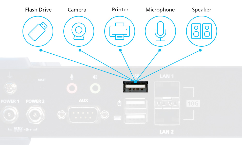 In addition to peripheral sharing (such as cameras, microphones, speakers, and more), the USB peripheral ports are capable of isochronous transfer communication to facilitate USB data transmission at a higher rate.