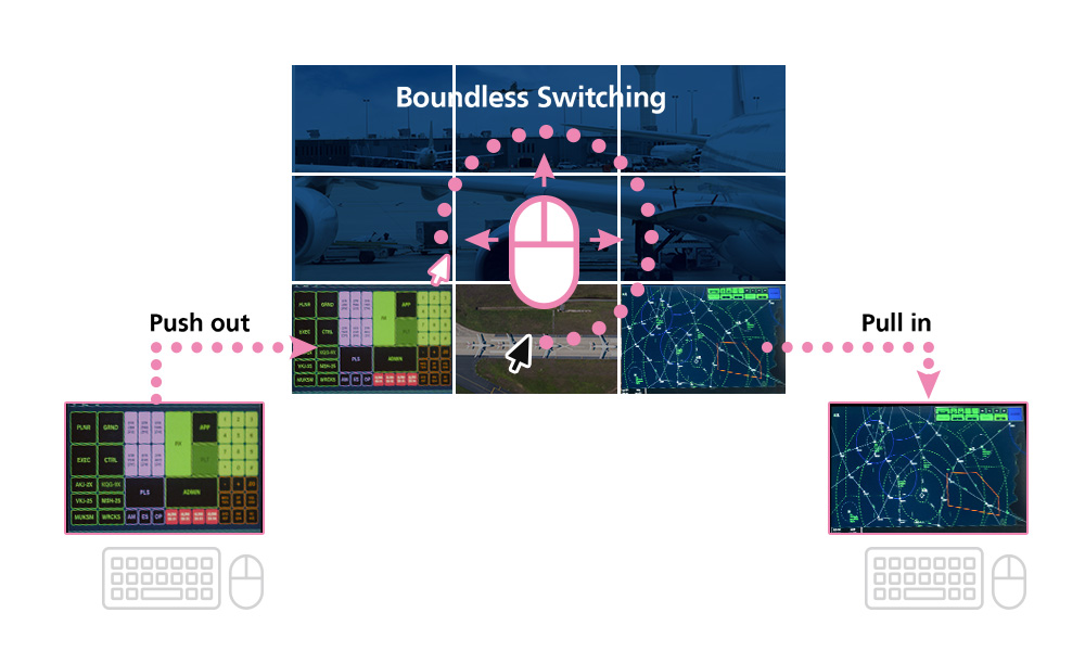 When integrating with the video wall, the KX9970F features ATEN’s patented Boundless Switching which allows operators to intuitively switch control from one computer to another by moving the mouse cursor across screens, in order to respond to any incident with escalated awareness. Furthermore, all screen contents can be “pushed” and “pulled” for prompt collaboration, sharing, and troubleshooting as required between workstations and the video wall, facilitating a streamlined control room workflow to maximize informed decision making.