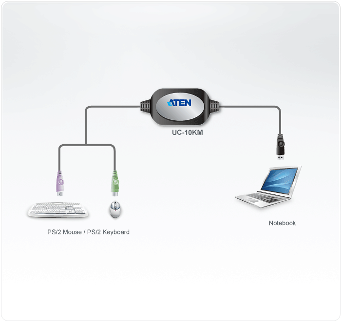 UC10KM is a signal converter with a 90cm cable. It can convert signals of PS/2 devices (keyboard and mouse) into USB signals, and supports multiple operating systems to fulfill the needs of users.