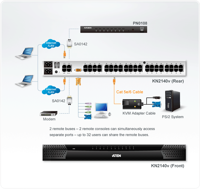 Aten´s new generation of KVM over IP switches - KN series allows local console access and remote over IP access for operators to monitor and access their entire data center over a network using a web-based browser. In addition, they offer out-of-band access with external modem support for BIOS-level troubleshooting when the network is down.