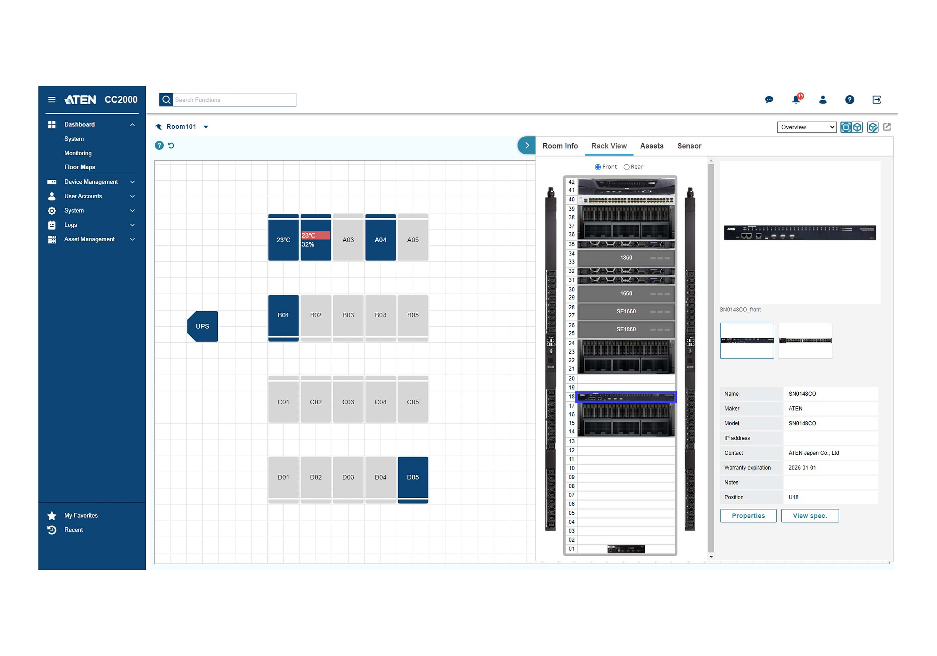 In addition, the CC2000 provides advanced capabilities such as asset management, environmental monitoring, and capacity management, including visualized floor maps. It enables users to assess, optimize, and allocate resources effectively, ensuring the efficient utilization of infrastructure in alignment with organizational goals and requirements.
