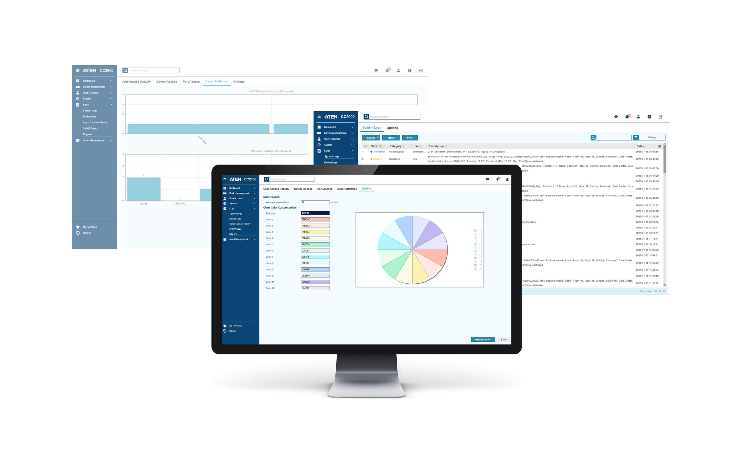 In addition to system logs, all logs from ATEN KVM over IP switches, serial console servers, PDUs, network equipment (e.g., routers, NAS, switches – all via SNMP) are consolidated for security debugging purposes, and can be provided as audit trails through the syslog protocol. Moreover, activity reports on user access, device access, port access, and asset statistics can also be generated for further analysis.