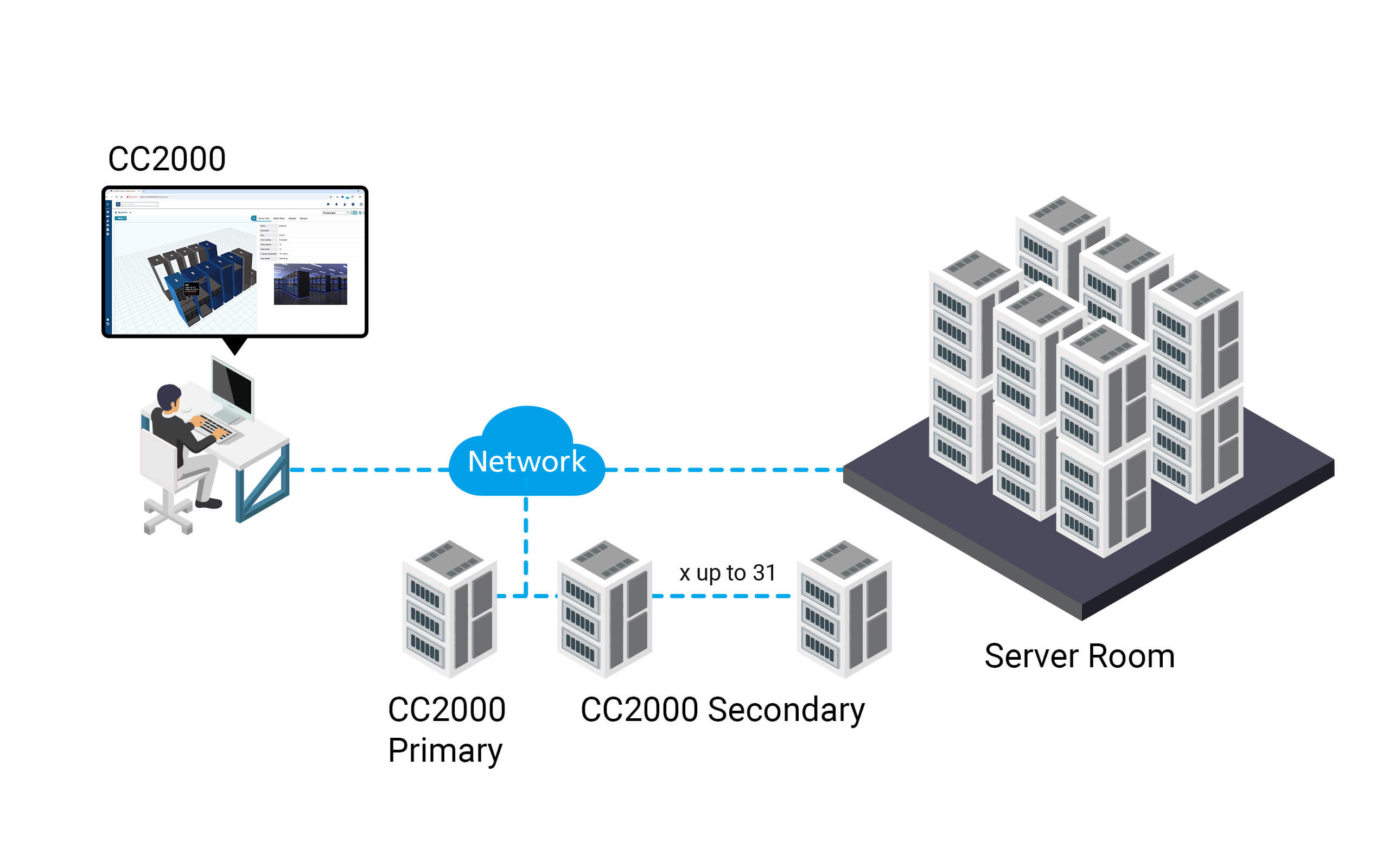 The CC2000 Centralized Management Software uses Primary-Secondary architecture to offer service redundancy. When the Primary CC2000 server goes down, the CC2000 management system will keep functioning since one of Secondary units can provide the required management services until the Primary unit is back online. This feature ensures that you are able to access all your devices whenever required.