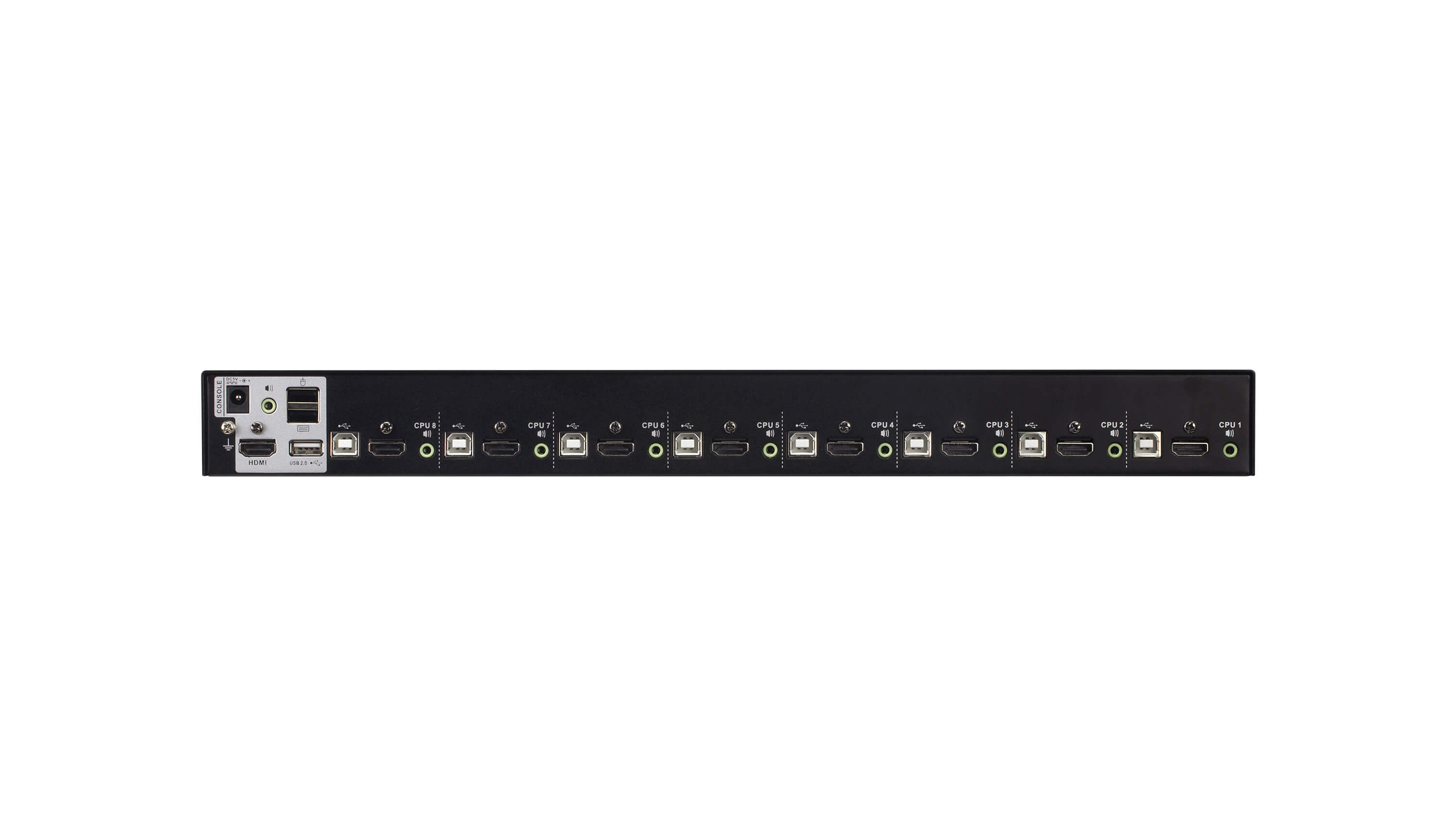 | KVM Ports | 8 x HDMI Female (Black) 8 x USB Type B Female (White) 8 x 3.5mm Audio Jack Female (Green) |