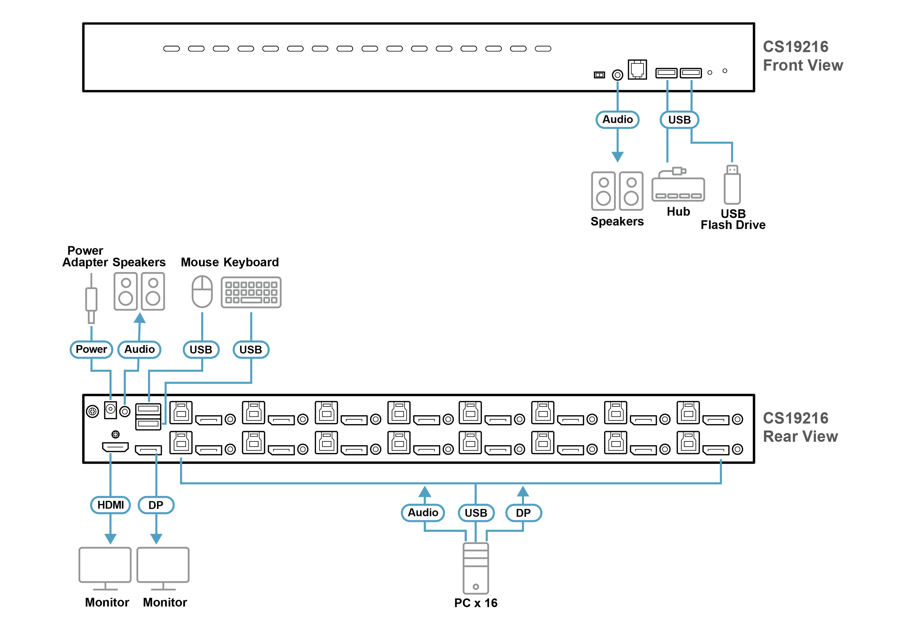 - 1x CS19216 16-Port USB 3.0 4K DisplayPort KVM Switch with Rack Mounting Kit
