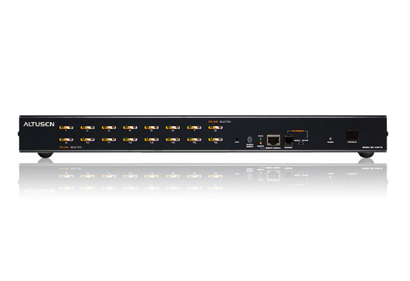 The entry level series of ALTUSEN High-Density KVM switches are offered in 16 computer port configurations with a 1U high housing for convenient rack mounting. They allow administrators to control multiple computers from a single KVM (keyboard, video, mouse) console. All switches are capable of expansion to provide control of up to hundreds of computers from the original single console for a flexible and economical solution for server room administration.