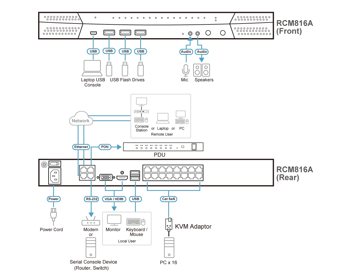 - 1x RCM816A KVM over IP Switch