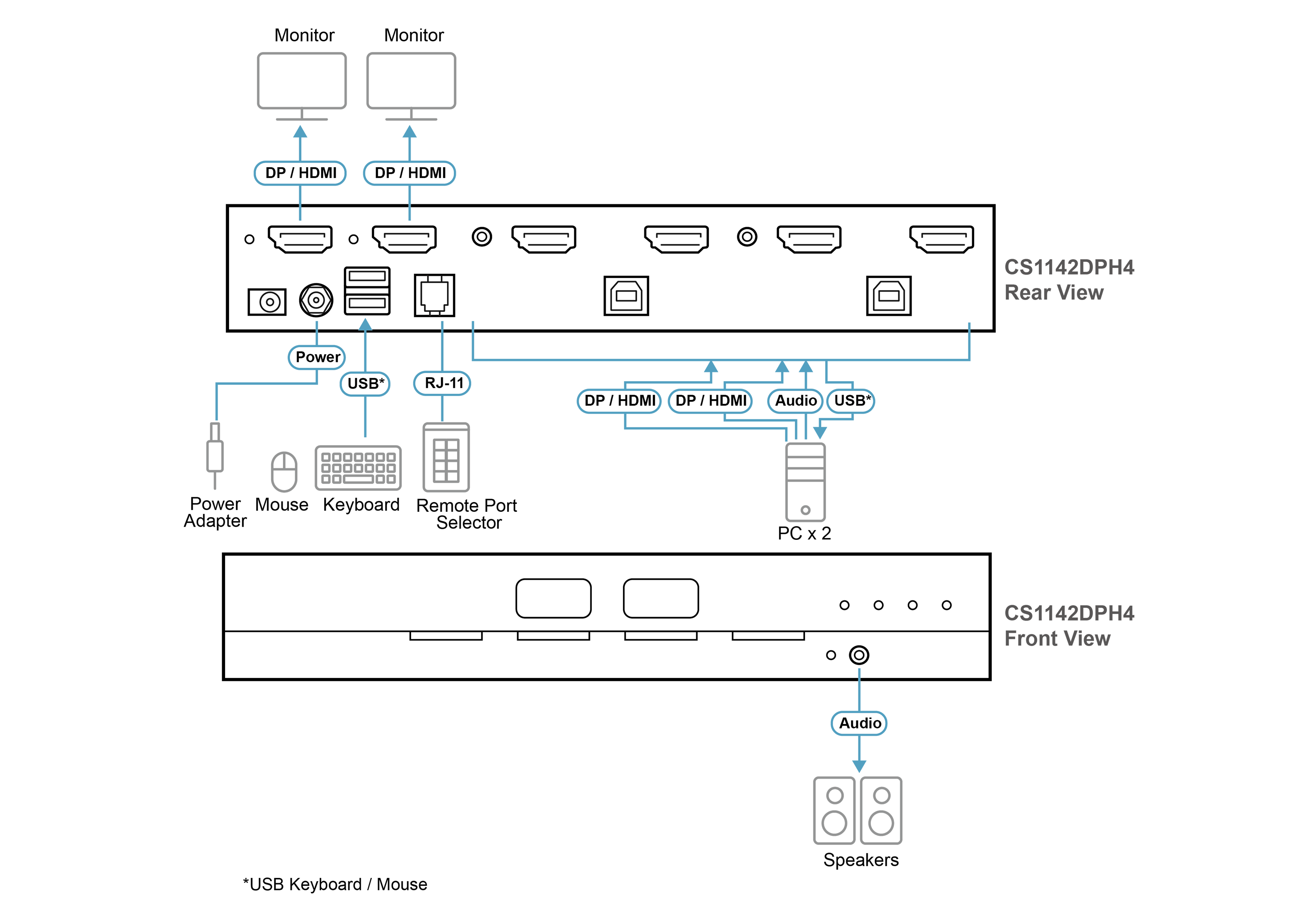 - 1x CS1142DPH4 2-Port USB 5K DisplayPort/HDMI Dual Display Universal Secure KVM Switch