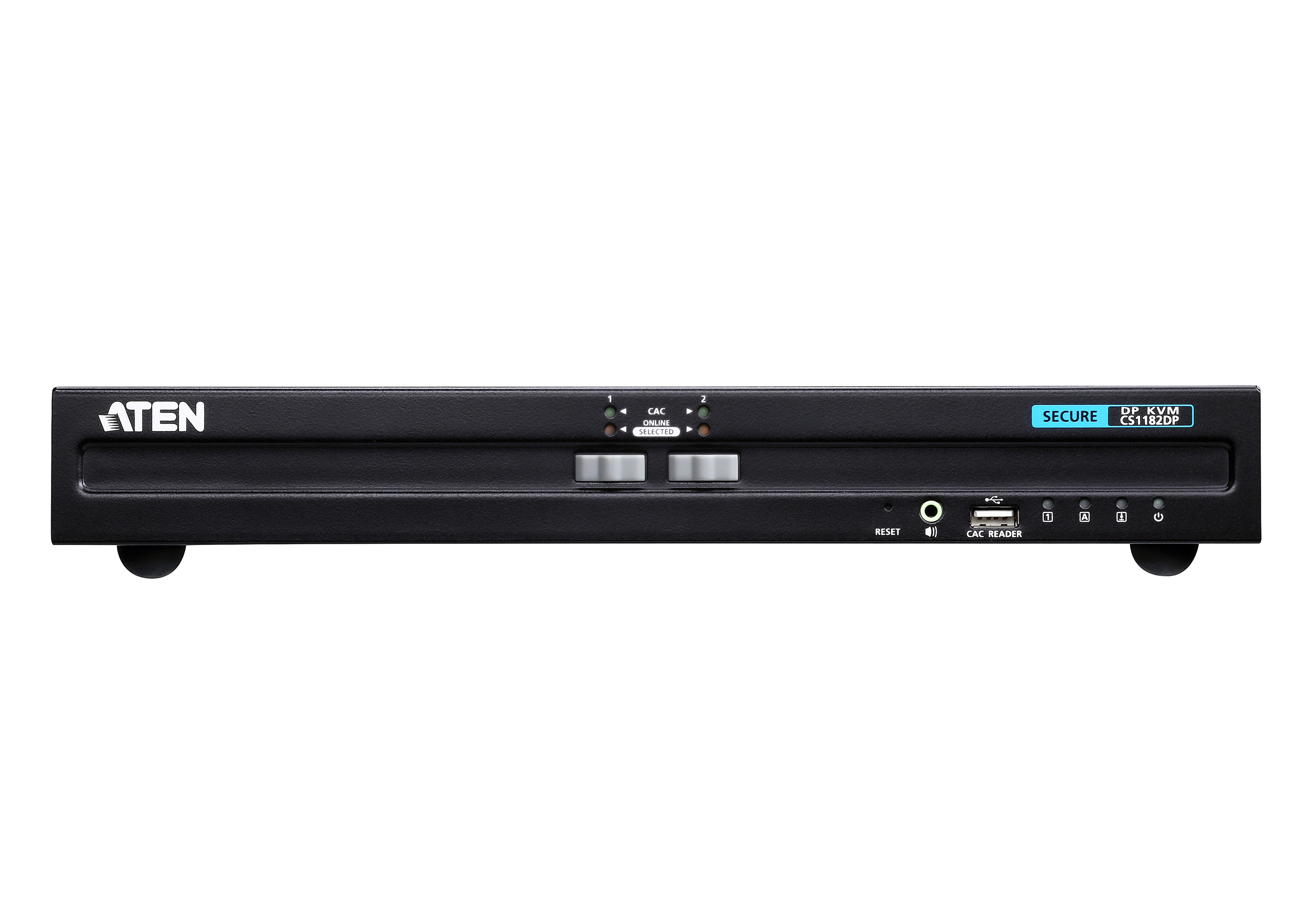 ATEN PSS PP v3.0 Secure KVM Switch (CS1182DP) provides isolation between computer sources and peripherals while sharing a single keyboard, mouse, monitor, speaker set, and Common Access Card (CAC) reader between connected computers of various security classifications. Compliance with PSS PP v3.0 ensures peripheral sharing capabilities provide maximum user data security when switching port focus, preventing unauthorized data flows or leakage between connected sources. Key protections include isolation and unidirectional data flow, restricted peripheral connectivity and filtering, user data protection, configurable device filtering and management, and always-on tamper-proof design, keeping sensitive assets isolated and providing advanced security and a