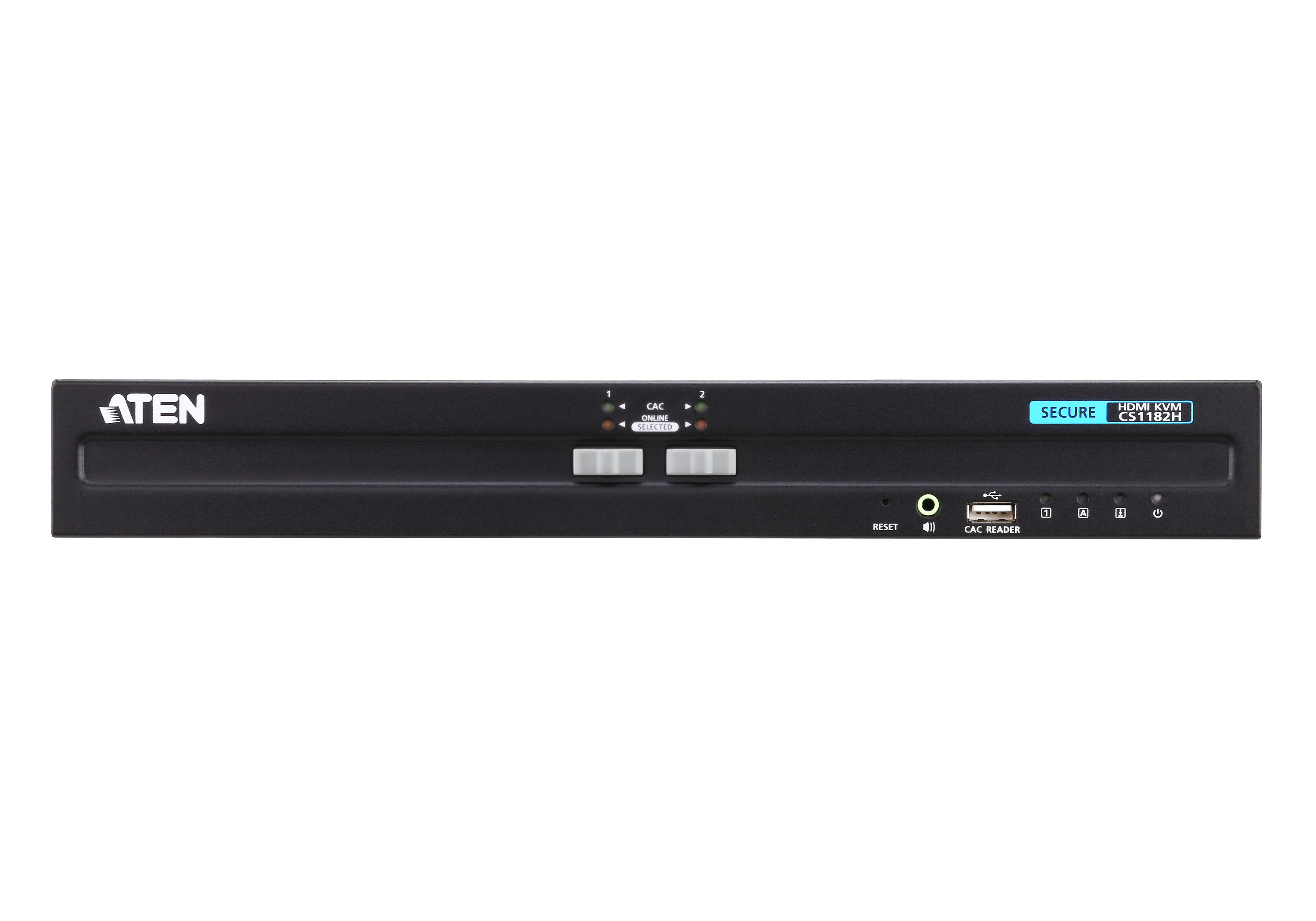 ATEN PSS PP v3.0 Secure KVM Switch (CS1182H) provides isolation between computer sources and peripherals while sharing a single keyboard, mouse, monitor, speaker set, and Common Access Card (CAC) reader between connected computers of various security classifications. Compliance with PSS PP v3.0 ensures peripheral sharing capabilities provide maximum user data security when switching port focus, preventing unauthorized data flows or leakage between connected sources. Key protections include isolation and unidirectional data flow, restricted peripheral connectivity and filtering, user data protection, configurable device filtering and management, and always-on tamper-proof design, keeping sensitive assets isolated and providing advanced security and a user friendly design for instantly secure deployment.