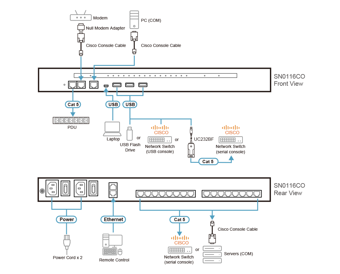 ATEN SN01xxCO Series (SN0108CO / SN0116CO / SN0132CO / SN0148CO) provides IT and network administrators secure, out-of-band access to serial devices located at data centers or remote sites (such as network switches allowing console operation using RS-232 and USB console1).With dual power / LAN in SN01xxCO models, they integrate cutting edge technologies to provide convenient installation, secure serial device access, easy management and comprehensive control for data centers.