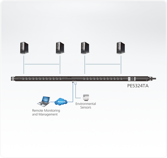The ATEN NRGence™ PE5324TA eco PDU is thin form factor intelligent PDU that contain 24 NEMA outlets. The lightweight thin form factor PDUs' 5.6 cm width fits tight into server racks, providing more space in the rack to increase air flow and cooling efficiency. This also means faster maintenance thanks to easier access to equipment installed behind PDUs.