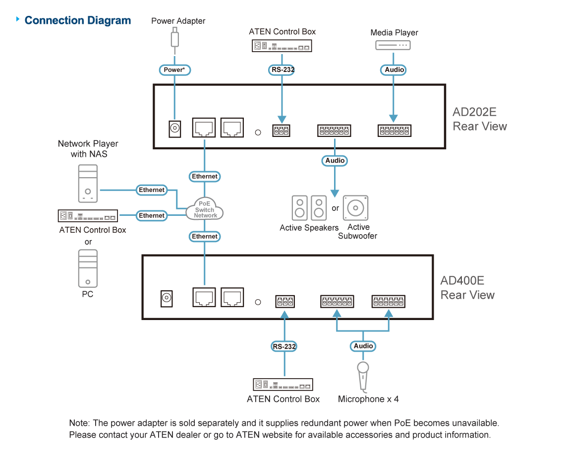 | Note | External power adapter is sold separately. |