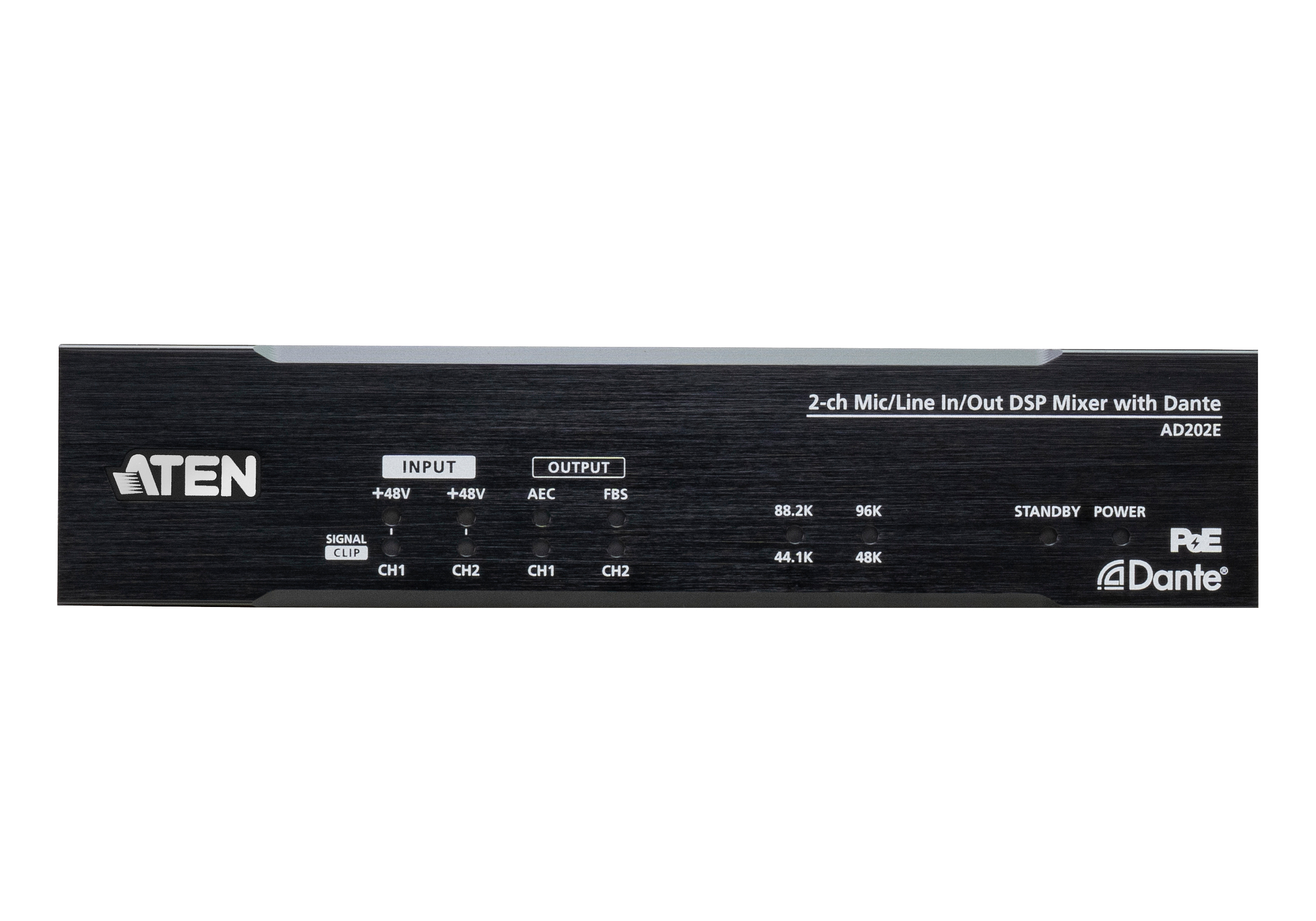 Other highlights include the support for Dante Daisy Chaining to help simplify system infrastructure wiring and for redundancy operation via PoE to eliminate the need for additional cable installations. The AD202E’s compact, half-rack size enclosure makes installation under desks or on any flat surface easy. It is perfect for on-line conferences or distance learning applications that require high quality, dynamic sound performance and intelligible audio at the far end within Dante audio networking environments.