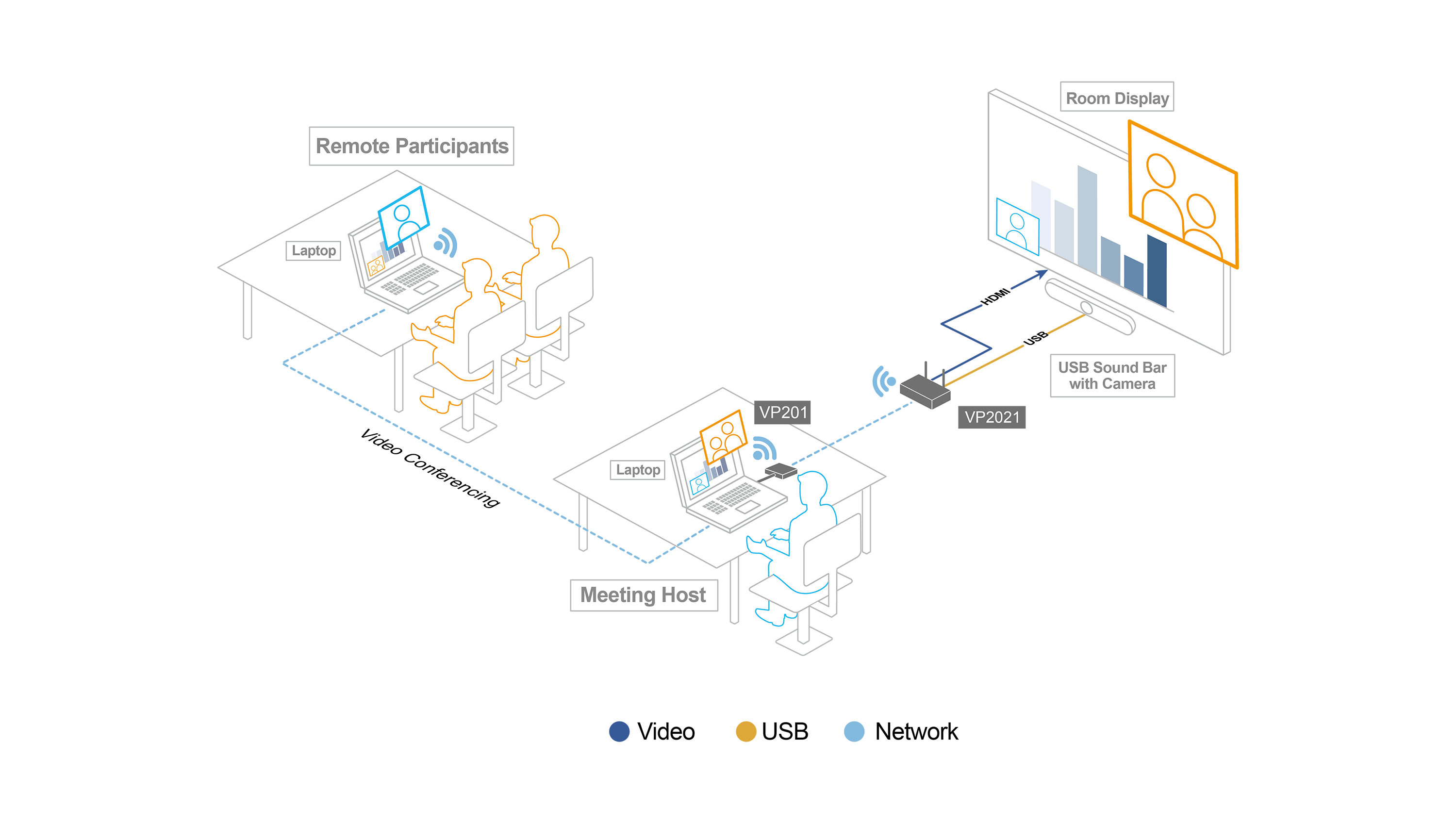 Works with VP2020 / VP2021 4K Wireless Presentation Switch to enhance BYOD / BYOM experiences with just one click to facilitate wireless content sharing from users’ own USB-C laptops.