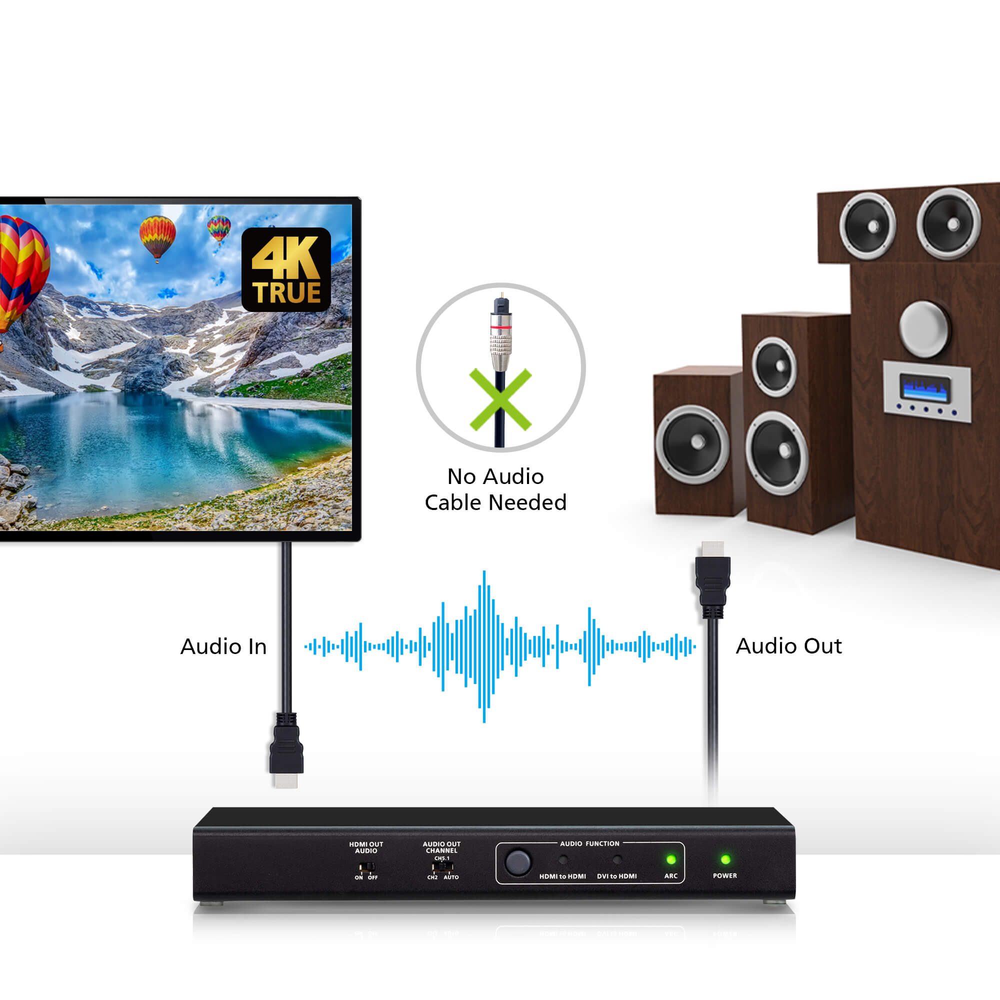 4K HDMI/DVI to HDMI Converter with Audio De-embedder