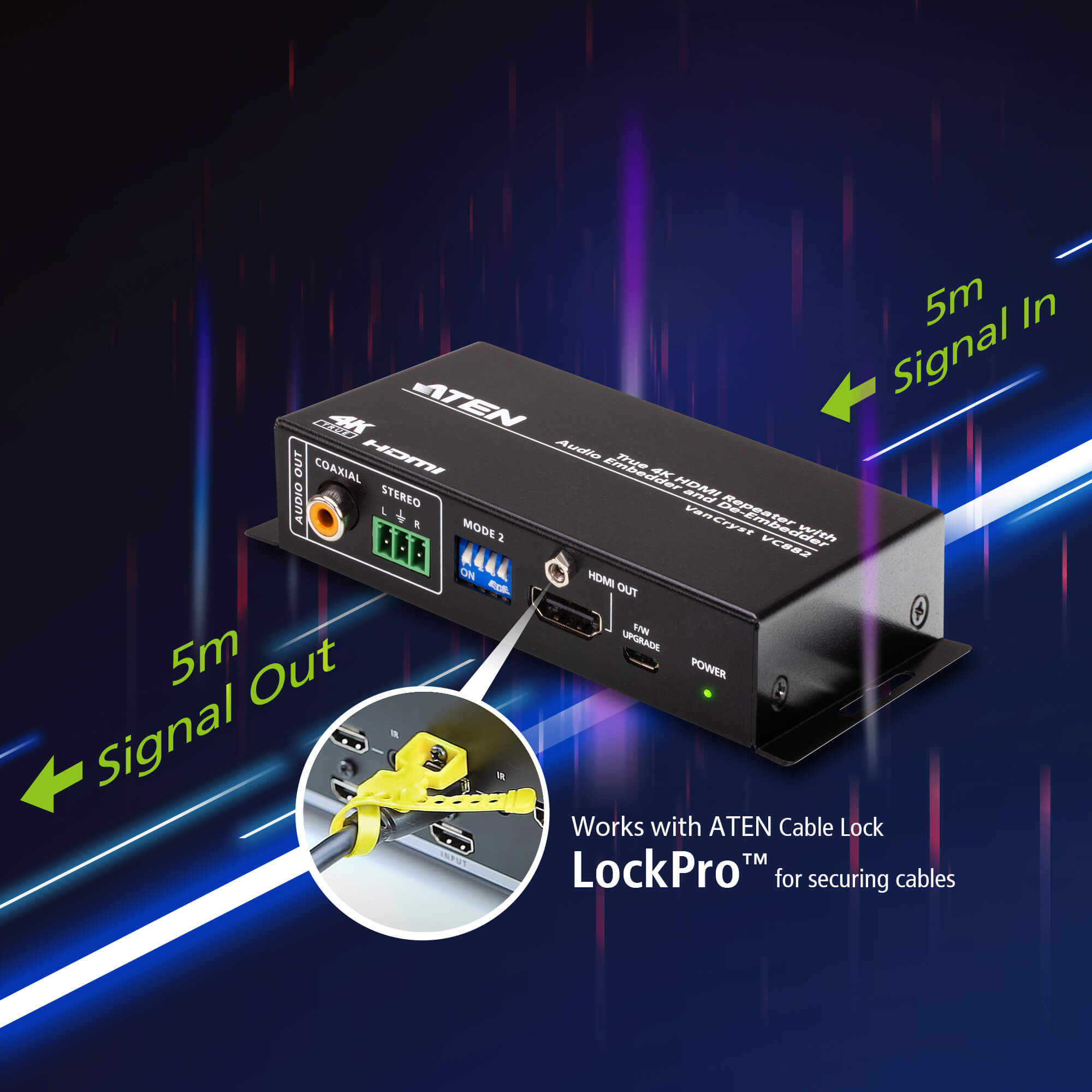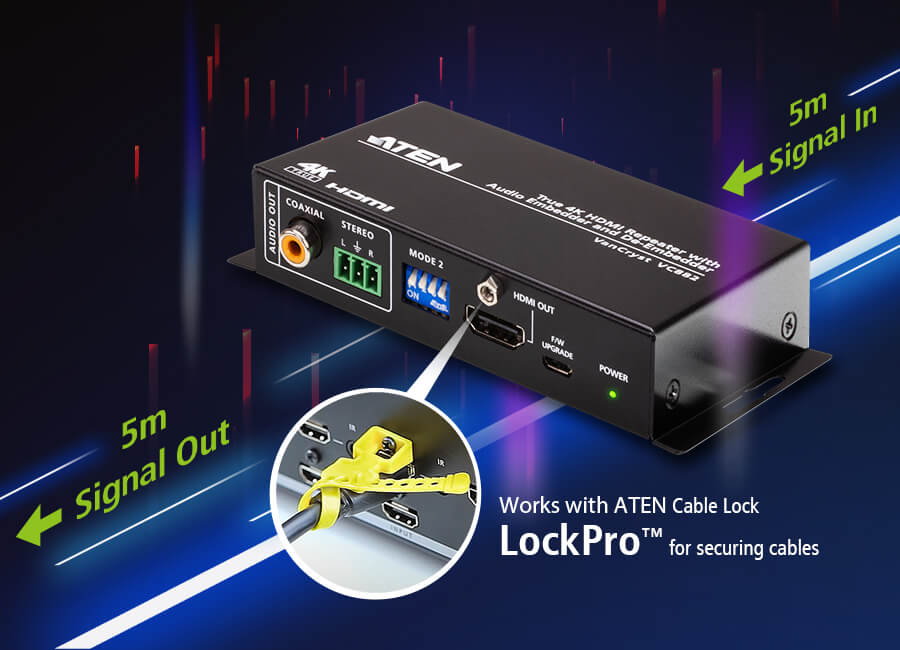 - 1x VC882 True 4K HDMI Repeater with Audio Embedder and De-Embedder