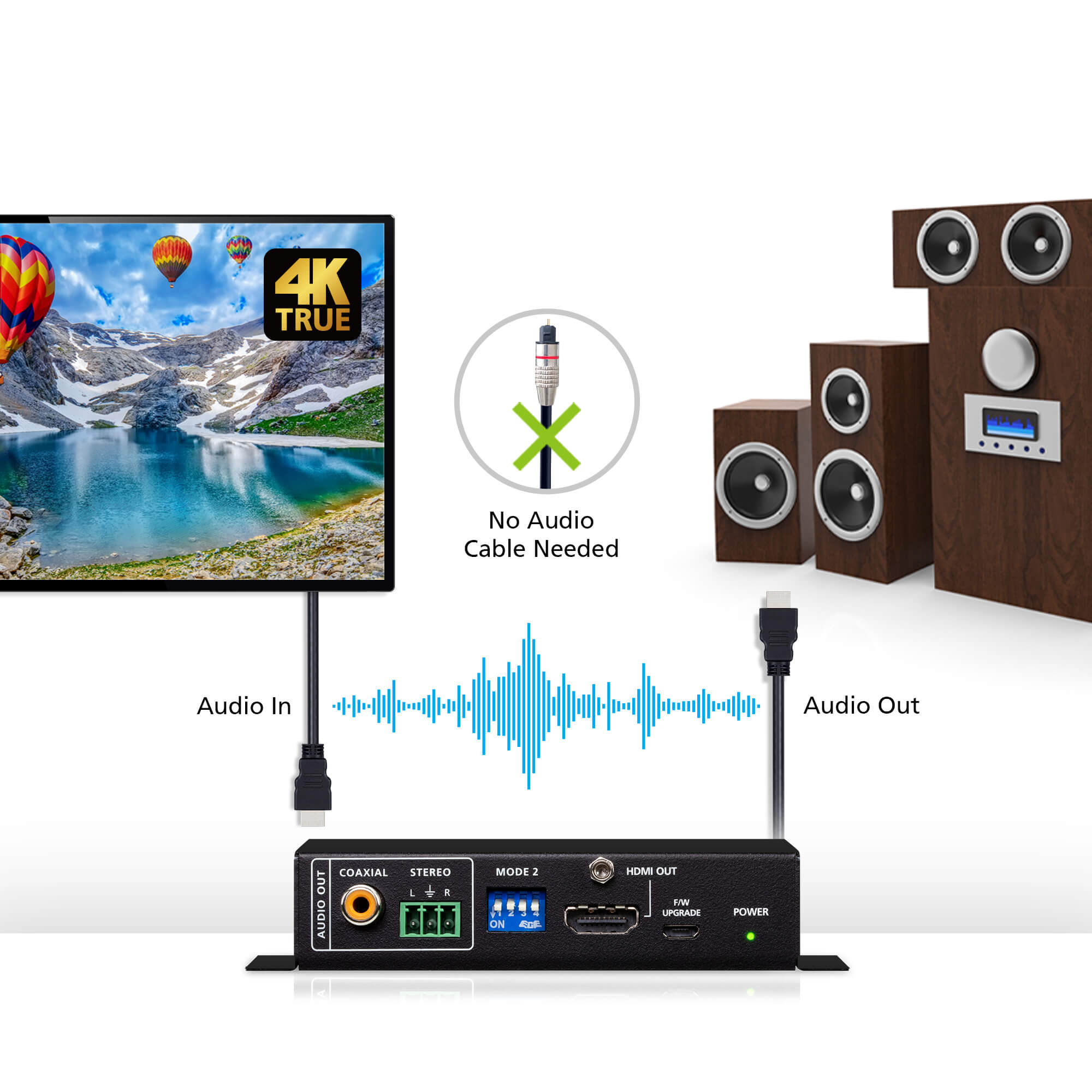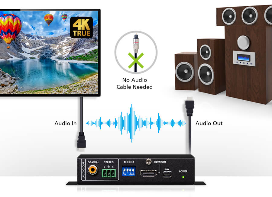 True 4K HDMI Repeater with Audio Embedder and De-Embedder