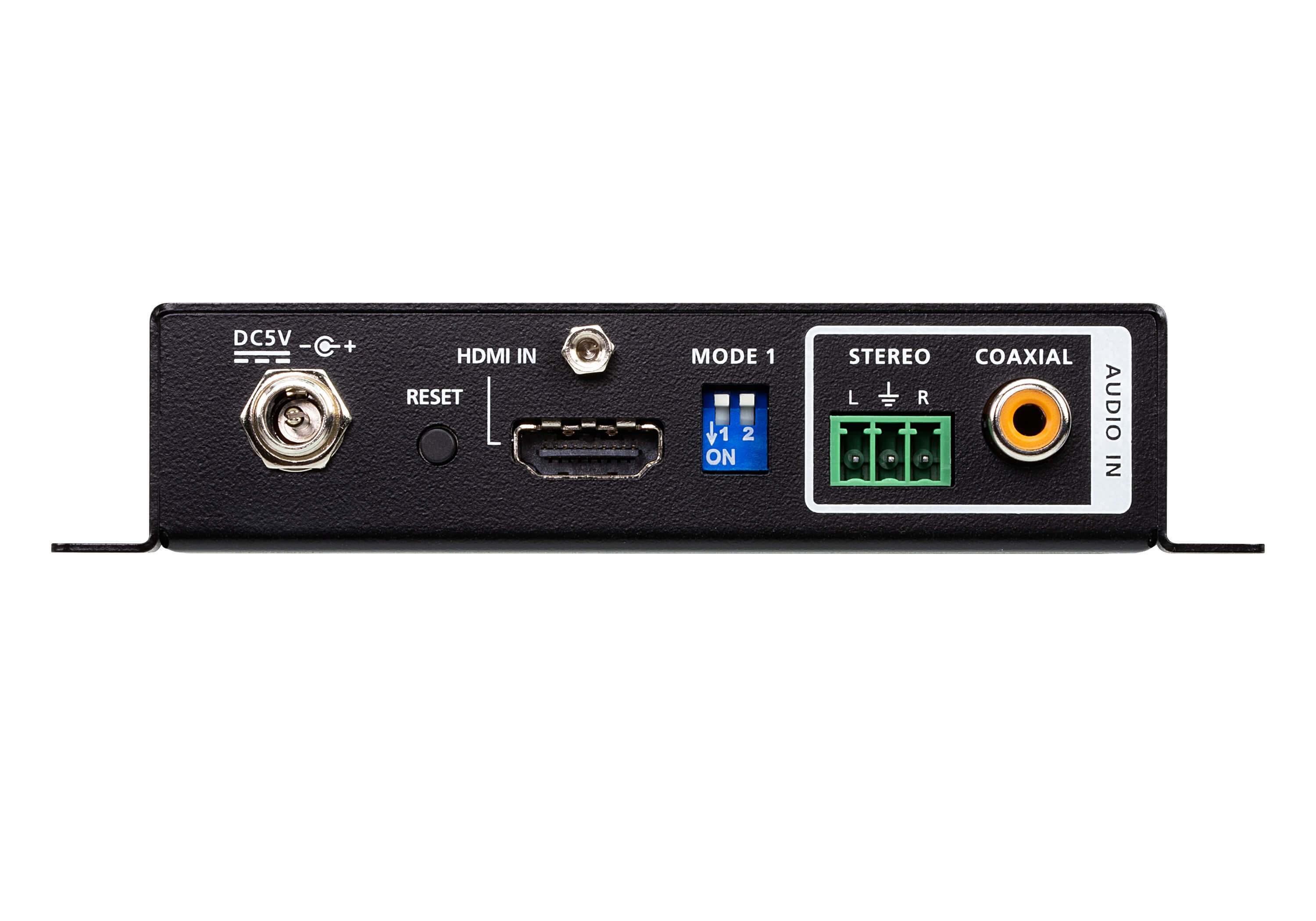 | Mode Selection | MODE 1 (2-PIN) PIN#1 (Enable / Disable Audio Embedder Function) PIN#2 (Audio embed from Coaxial / Stereo) MODE 2 (4-PIN) PIN#1 (Enable / Disable Audio Extractor Function) PIN#2 (Enable / Disable ARC function) PIN#3&4 (EDID mode selection: Bypass, 5.1 CH, 2 CH, Learn) |
