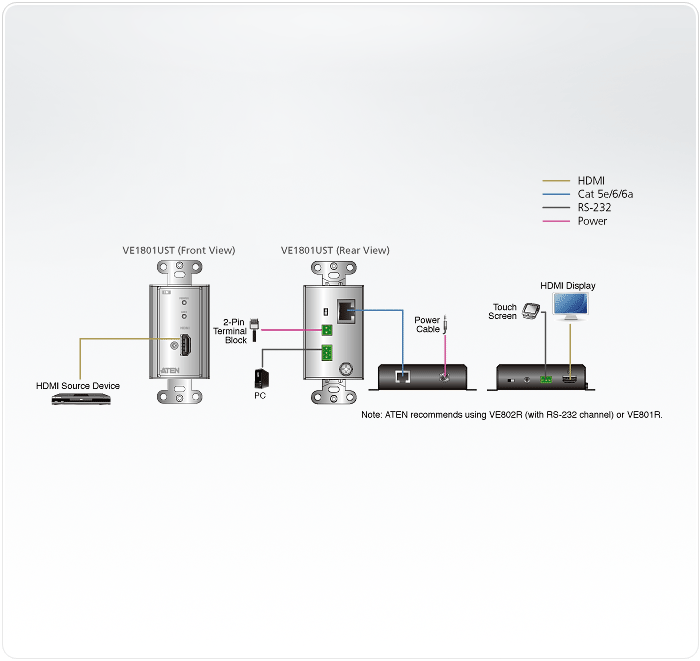 • 1x VE1801UST HDMI HDBaseT-Lite Transmitter with US Wall Plate (4K@40m)