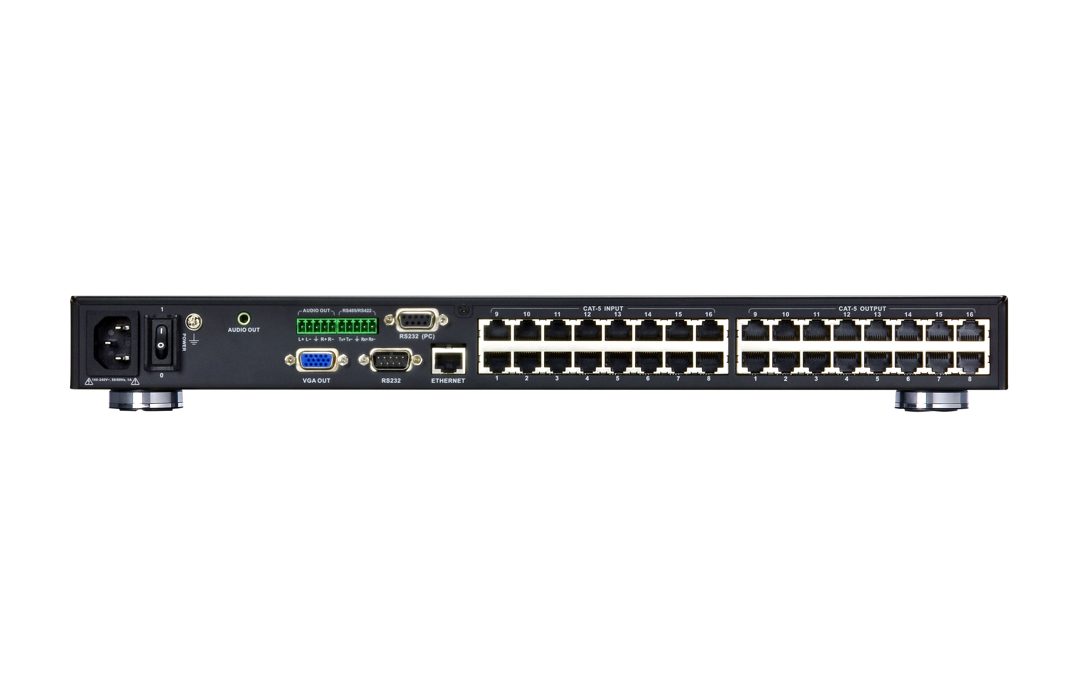 - Connects any of 16 Cat 5 A/V inputs to any of 16 Cat 5 A/V outputs in combination with ATEN VE500/VE300 A/V Over Cat 5 Extender system