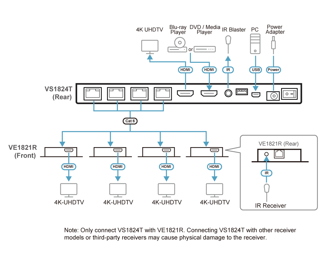 - 4 x VE1821R 4K HDMI Cat 6 Receivers