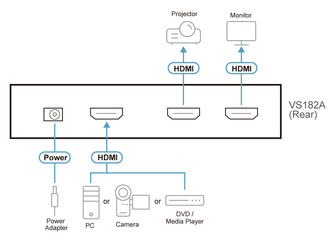 - 1x VS182A 2-Port HDMI Splitter