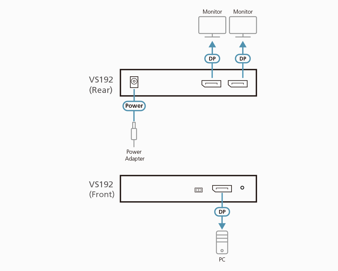 The VS192 2-Port 4K DisplayPort Splitter is the perfect solution for anyone who needs to send one source of DisplayPort high definition video to 2 DisplayPort displays. The VS192, not only splits but also expands DisplayPort audio/video signals on 2 DisplayPort monitors, is ideal for any multi-display application.