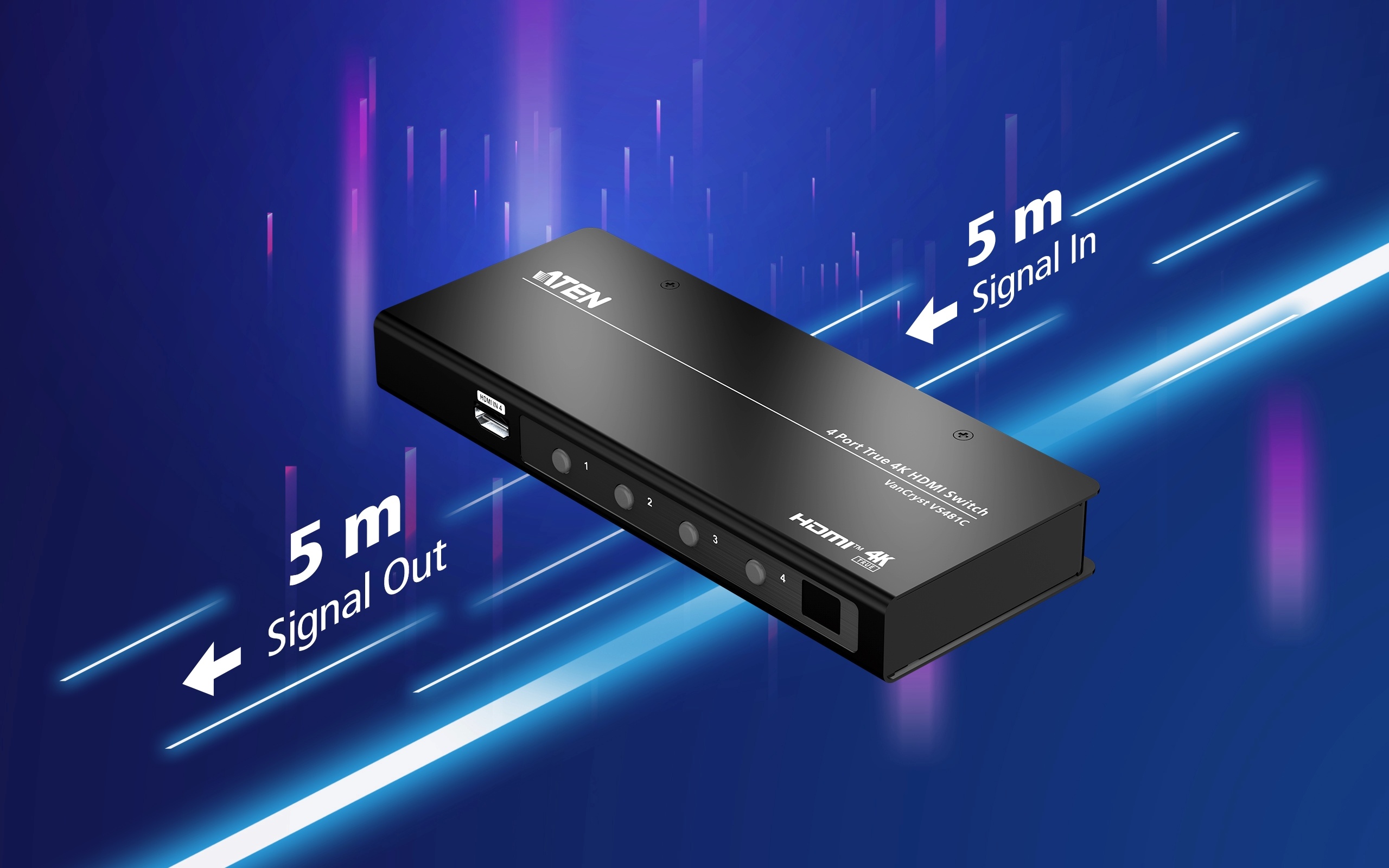 Engineered to meet today’s demand of True 4K signal transmission and user- oriented design, the ATEN VS481C is a powerful solution for a wide range of settings, such as home theater, meeting rooms, trade shows, and shopping centers.