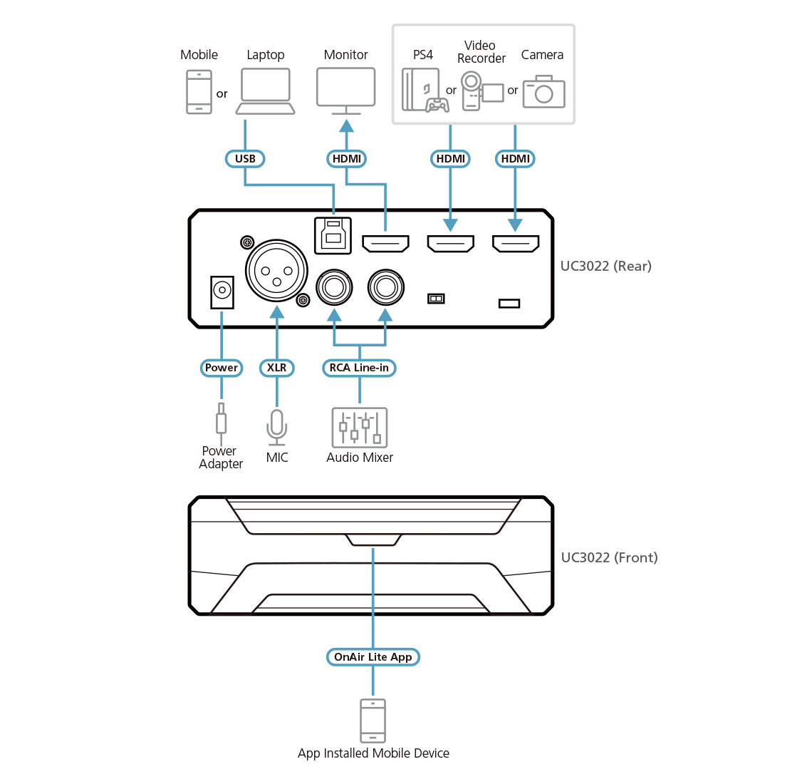 You don’t need to stay by your equipment or hire a person to help direct your show. Simply use Bluetooth, and the OnAir Lite app, to connect your smartphone to the UC3022. A single user can easily produce pro-level video content with smooth transitions and pro-looking effects, without any production crew required.