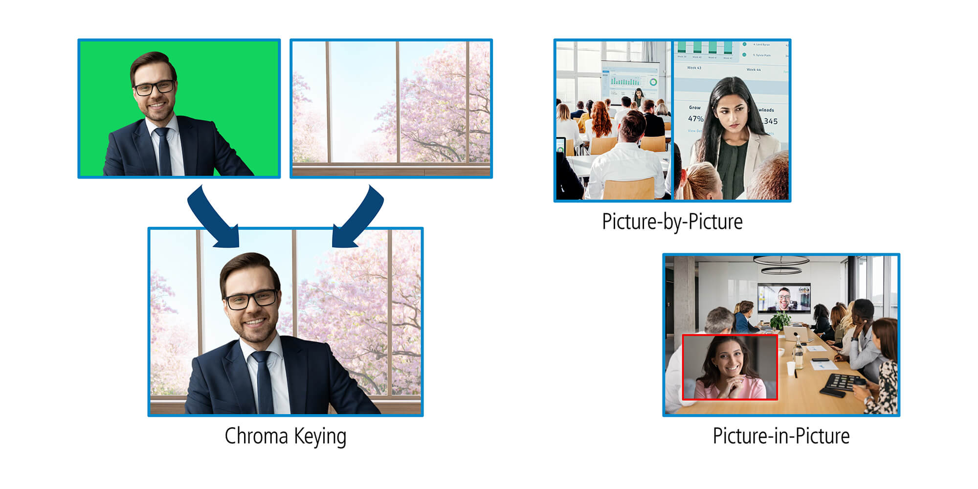 Chroma Keying can be accomplished by utilizing RGB codes, color palettes, or even a color selection tool to precisely select colors from the actual location of the background image.