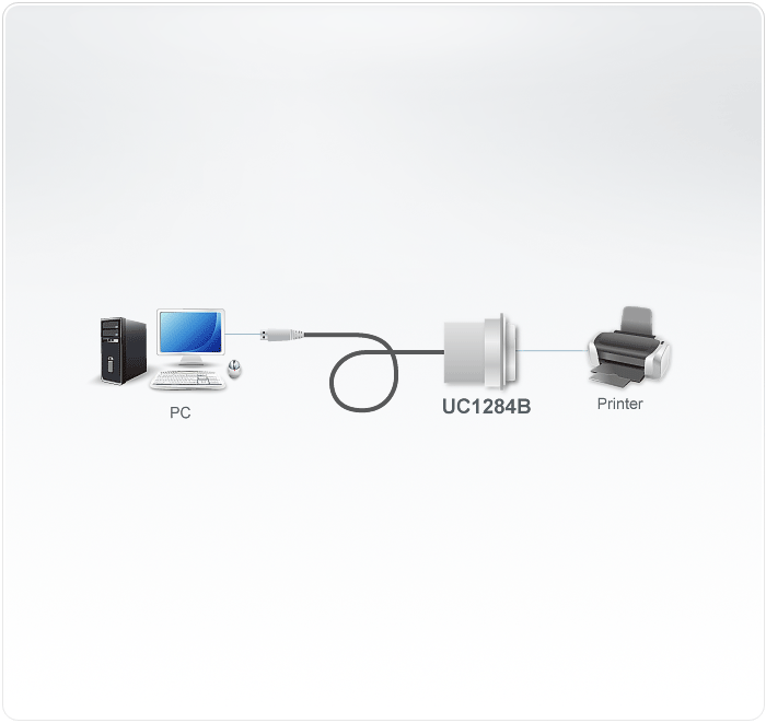 UC1284B is a USB to parallel port converter. It converts the USB on PCs, notebook PCs and handheld computing devices into a parallel port for printer connection.