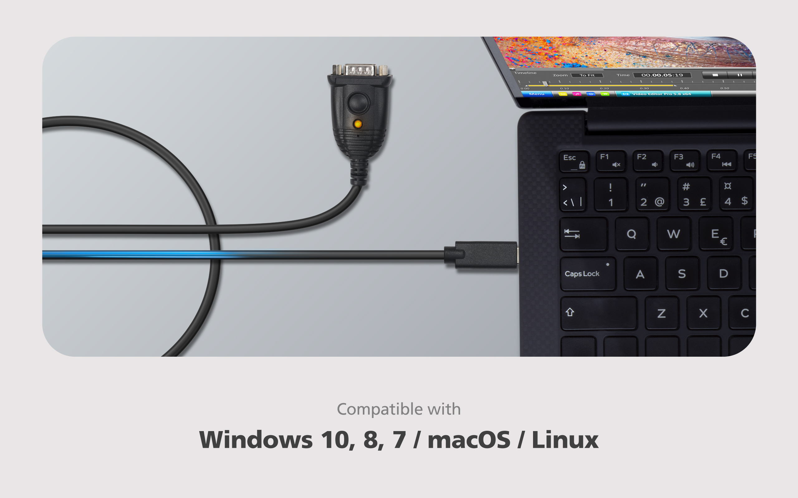 The UC232C is compatible with multiple operating systems, such as macOS, Linux, and Windows 7/8/10.