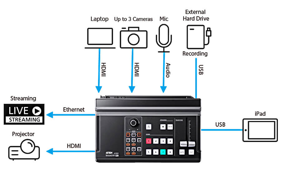 The ATEN StreamLIVE PRO, for example, allows you to livestream on two platforms at once, such as YouTube and Facebook, switch scenes, edit graphics on the fly, and more, all on your own. With fewer staff working in-person at an office, or for those streaming from home, being able to do all of this by yourself is a huge boon to creatives, marketing, and other departments that want to create better video content for their audiences, not to mention teachers streaming classes to students.