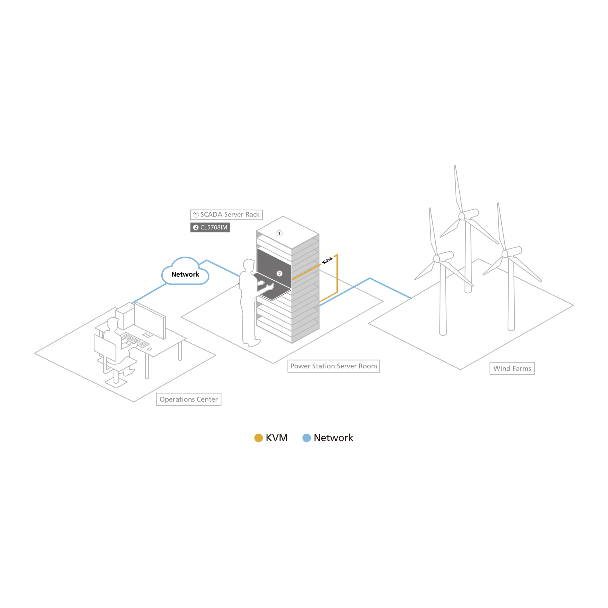 In a nuclear power plant substation, the demand is high for a compact server management solution within the limited server room space, enhancing seamless power transmission operations. This system should allow easy server switching and secure remote access, maintaining a continuous link with the electrical grid. Aimed at streamlining the control room and improving the Human System Interface, the solution should minimize the need for multiple displays, combining operator tasks to cut costs. It must also support extended reach for effective power management, crucial for the plant's startup and key equipment, ensuring operational reliability and efficiency.